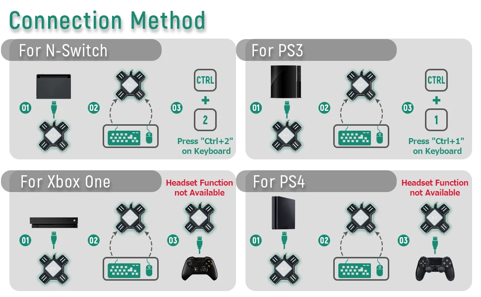 KX Keyboard Mouse Converter Adapter For Xbox One PS4 PS3 N Switch