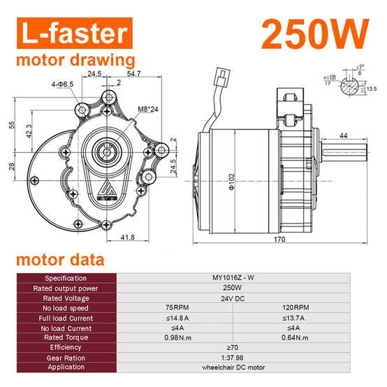 L-faster Stable Performance High Torque 24V 250W 350W Brush Gear motor for Electric Wheelchair