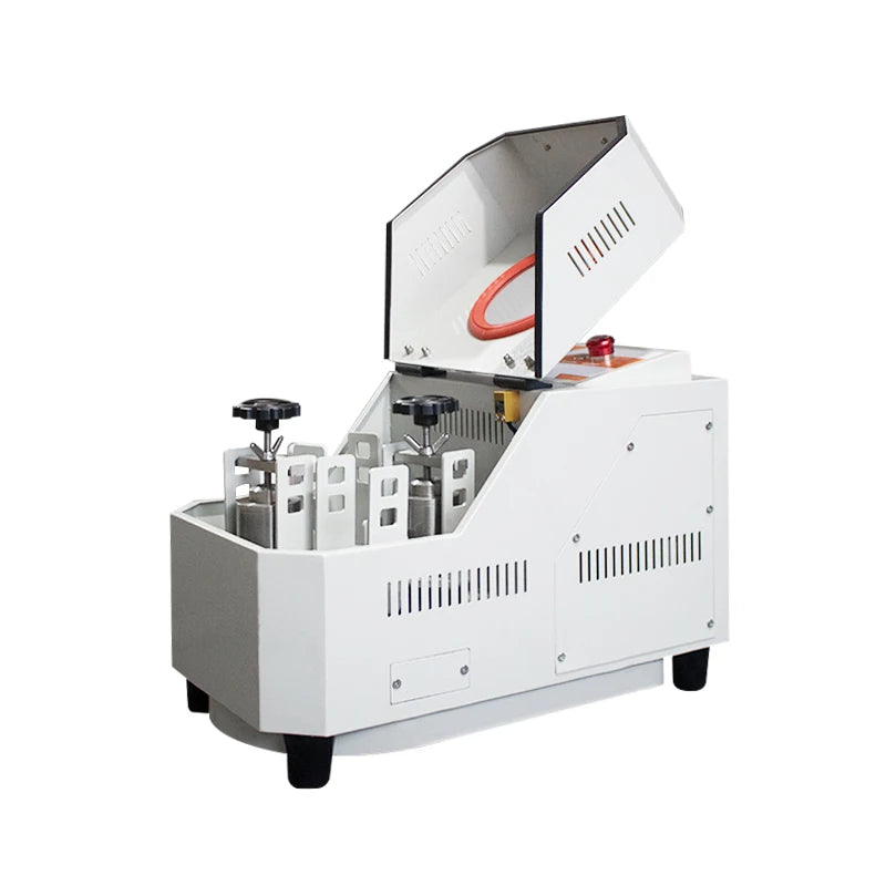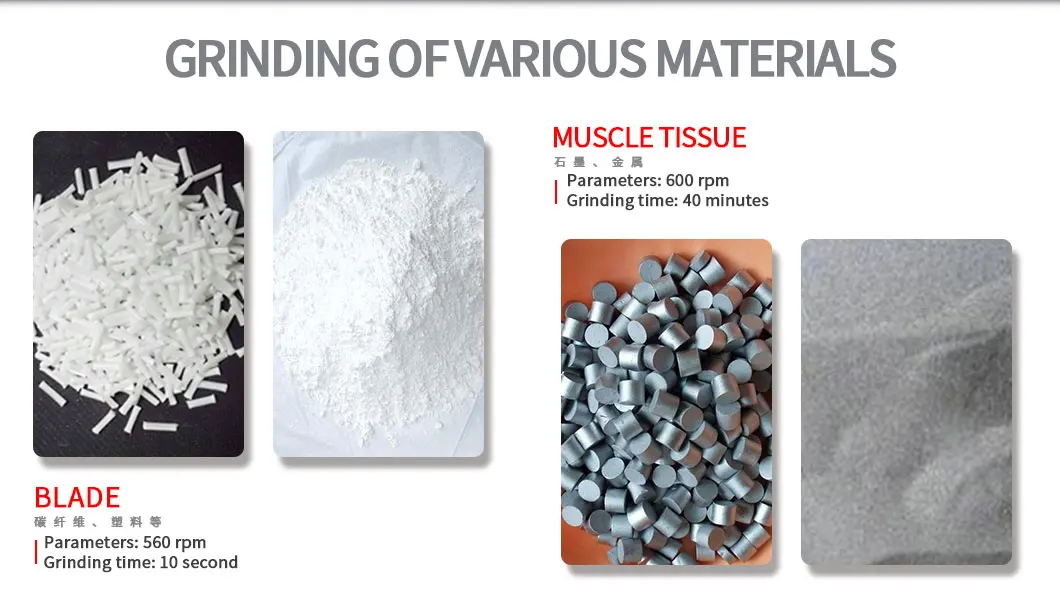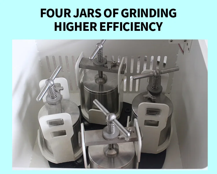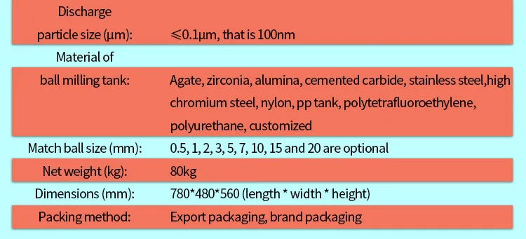 3. Working mode: two or four ball milling tanks work at the same time Maximum sample loading: two-thirds of the volume of ball milling tanks. Feed tension: soil material ≤10 mm. Other materials ≤3 mm. Discharge particle size: the minimum can reach 0.1 um (i.e. 1.0 x 10 mm-4).
