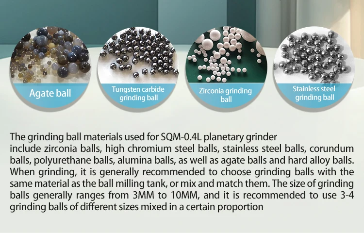 The grinding jars for your optional, we have stainless steel jars, zirconium jars, agate jars, ceramic jars, nylon jars, tungsten carbide jars, PU jars, etc.. The SQM-2L planetary ball mill jars suitable for the capacity from 100 ml to 1000 ml,so you can select the correct jars capacity before confirm the order.