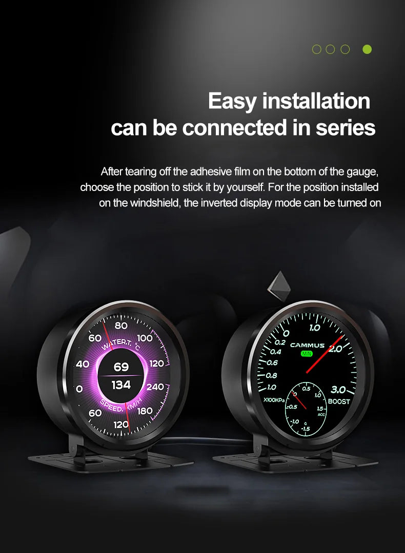Multiple dial styles Switch single and dual gauge at will Easy installation can be connected in series More comprehensive intelligent and integrated information OBD diagnostic port, plug and play