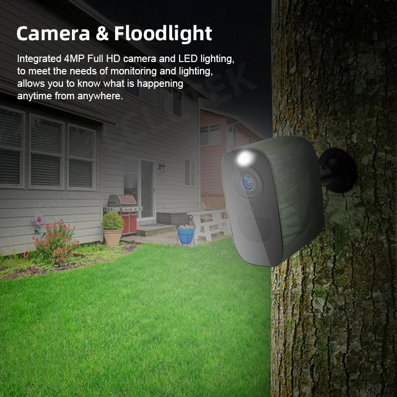LCLCTEK 4G solar battery security trail camera 4MP Full Color Floodlight IP66 Outdoor wireless cctv camera
