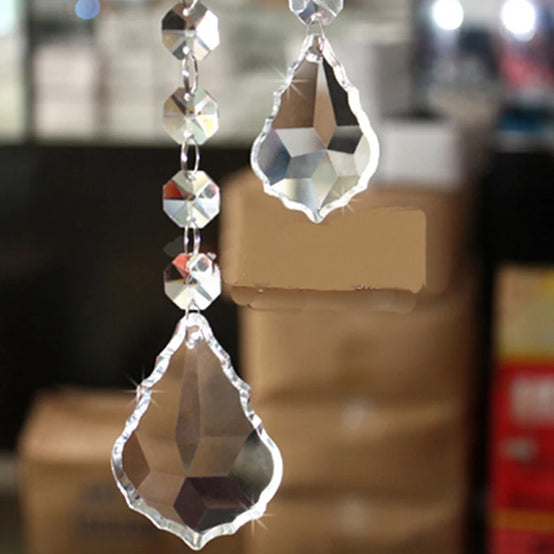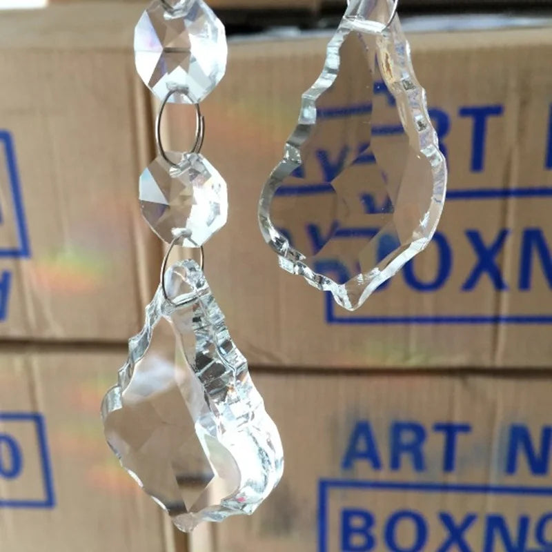 Leafs Style Crystal Beads Drop Pendants Chandelier Curtain Lamp Chain Glass Prisms for Party Decoration