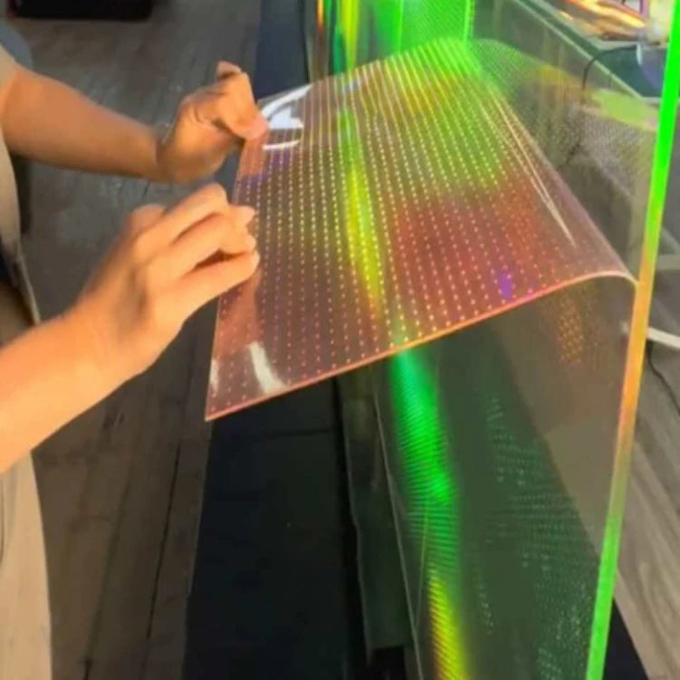 Transparent Film Screen Stick on Glass PCB Board Flexible Soft Curved Curtain Transparent LED Display Rollable Screen Stick on Glass Landscaping |