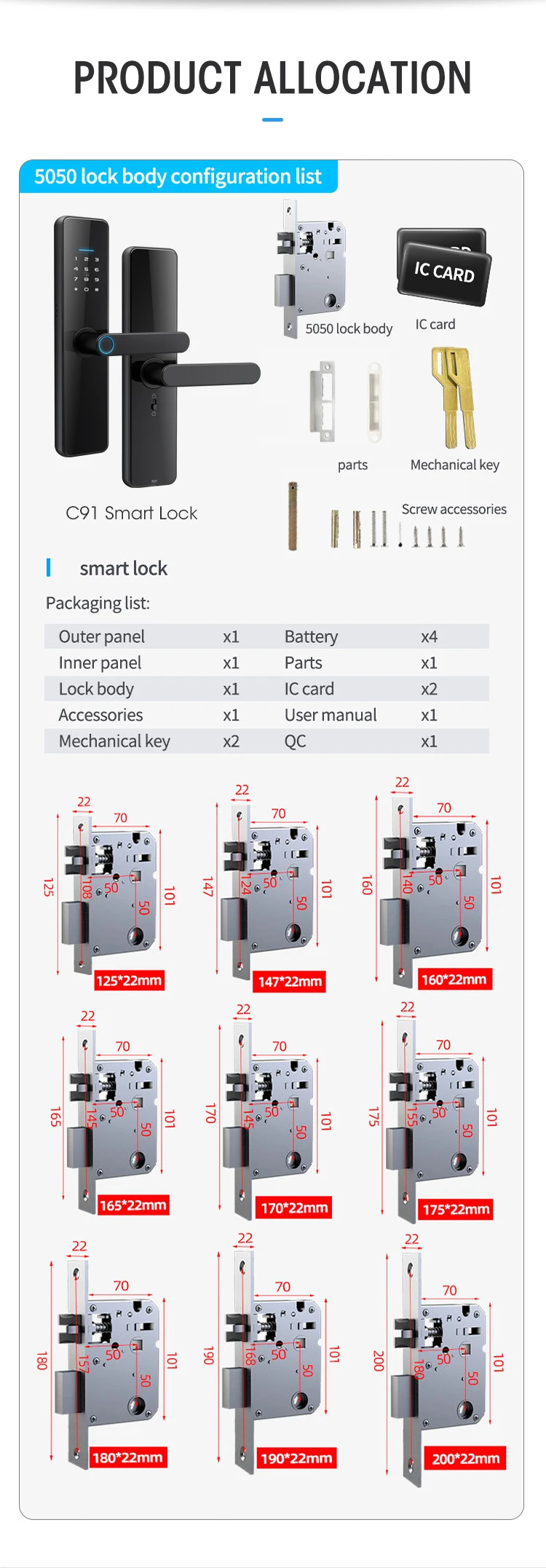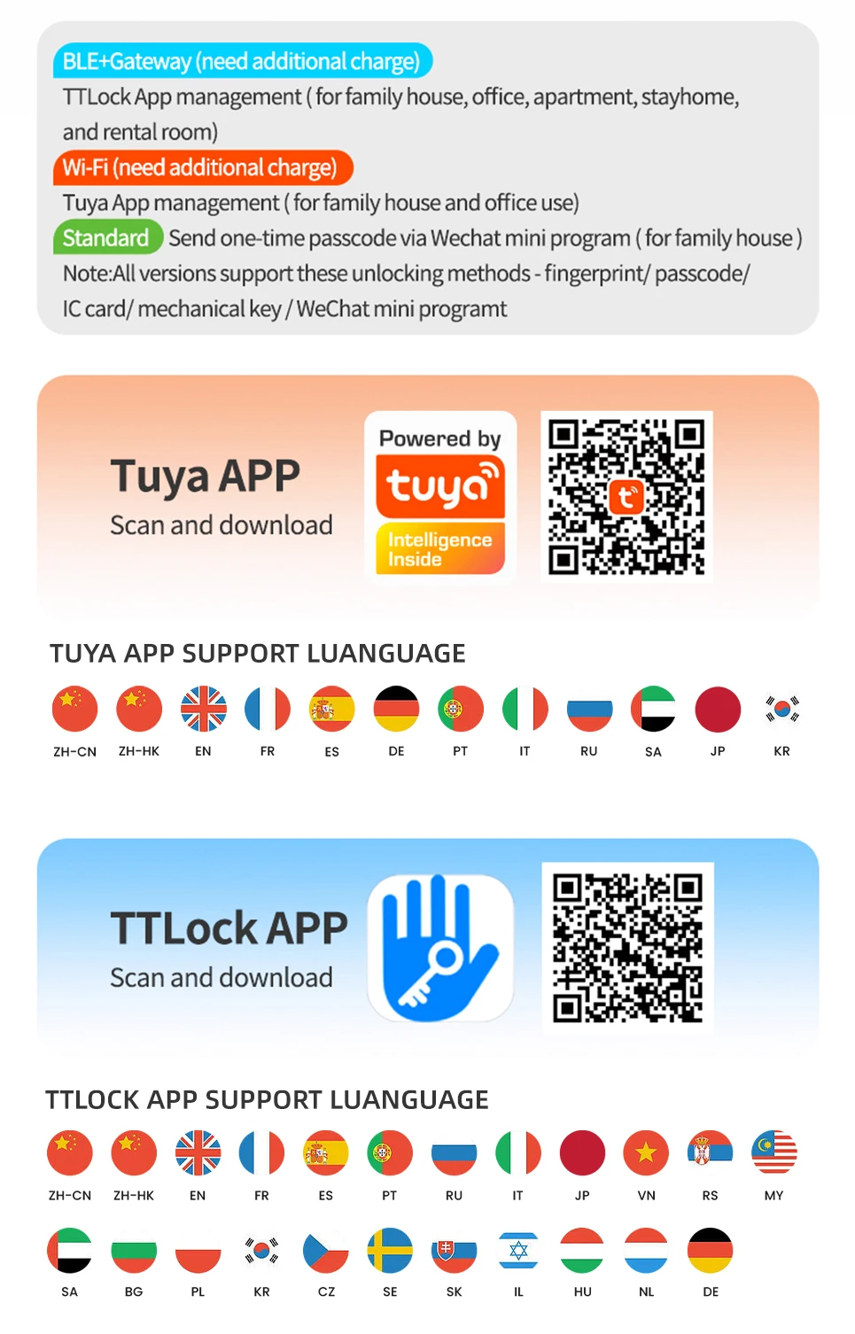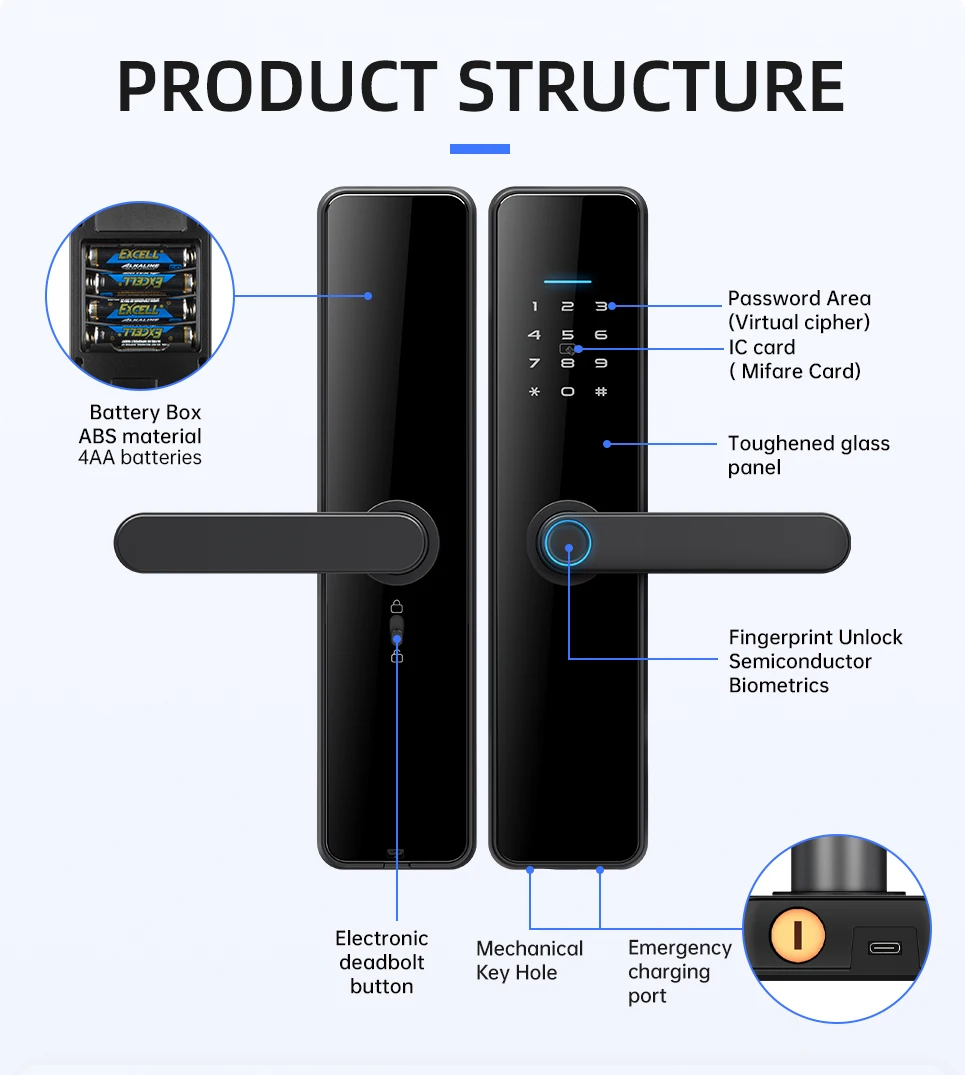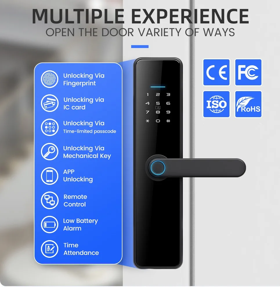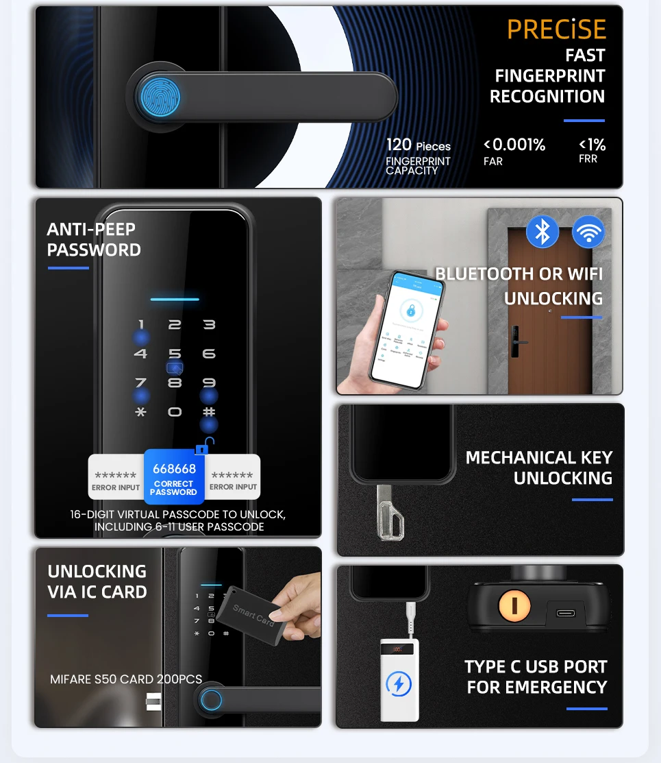 APP/ fingerprint/ password/IC card/key/Bluetooth