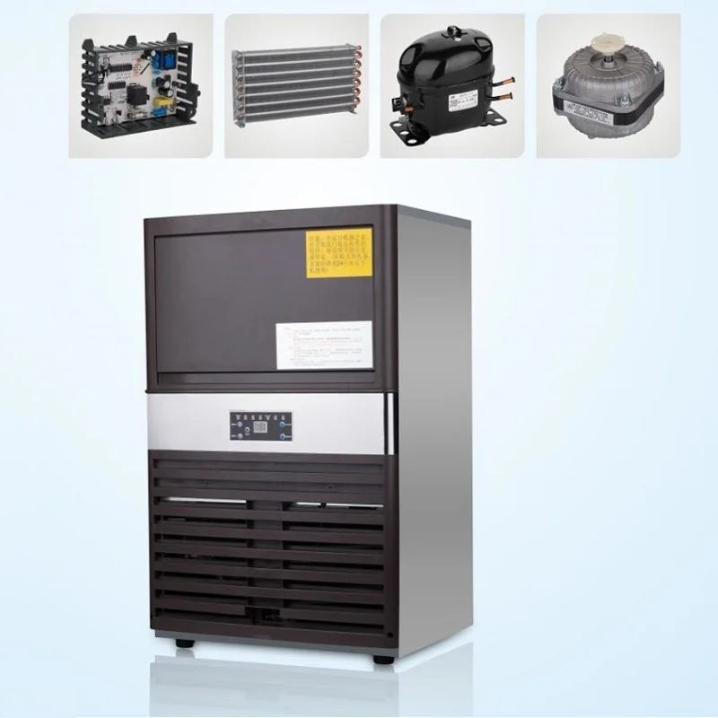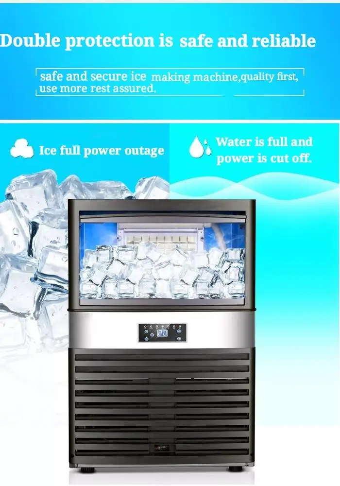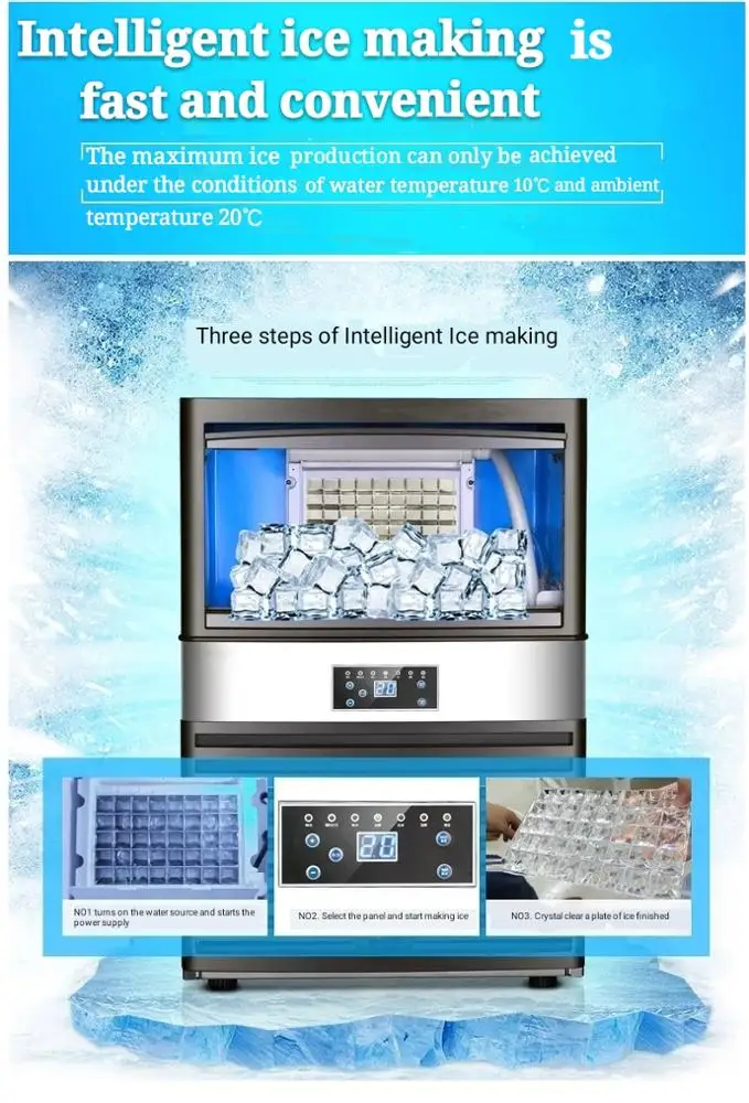 stainless steel, our 50/58/68KG Commercial Ice Making Machine is durable, sanitary, and easy to clean. It is equipped with digital control panel and owns the ability to set time of making ice in advance. In addition, it has good insulation effect thanks to its super-thick foam layer and cyclopentane insulation layer. Perfect for coffee shops,hotels,bars,KTV, supermarkets, bakeries,restaurants, cold drinks shops, laboratories, schools, hospitals and other places.