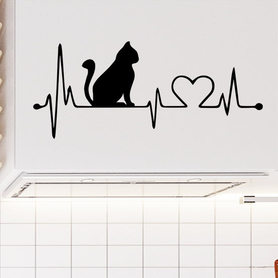Love Heart Electrocardiogram Music Cartoon Cat Car Sticker