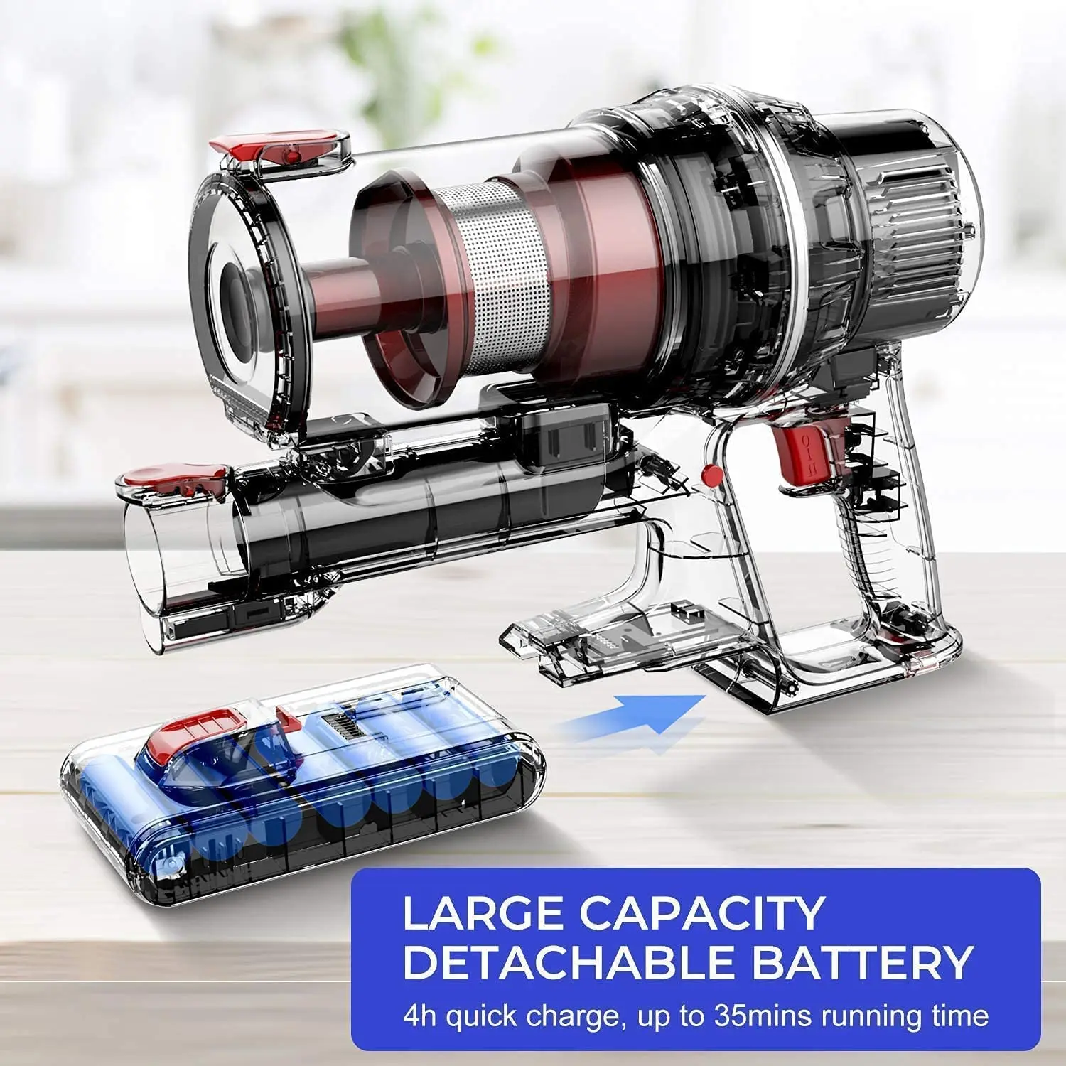Equipped with a built-in brushless digital high-performance motor with 380 W and up to 80,000 rpm, which produces a suction power of 26,000 Pa to quickly suck the rubbish. This makes the cleaning process more efficient and can save 10 minutes of valuable time every day.