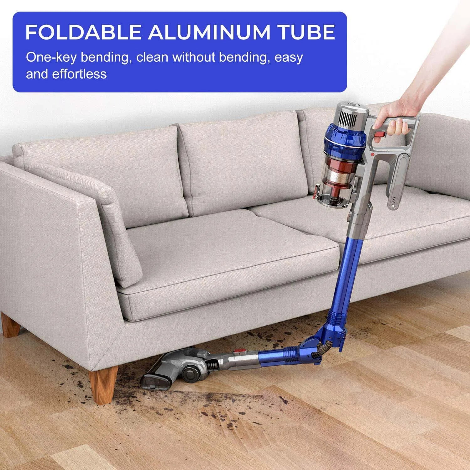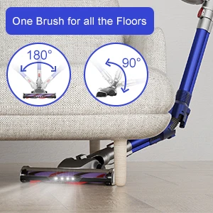 Innovative foldable design, no need to bend down to clean the bottom of the sofa The aluminium tube, which can be folded 180 degrees, eliminates the pain and embarrassment when cleaning the floor under the beds and tables. Flexible floor brushes and lighting ensure that no dust particles are overlooked.