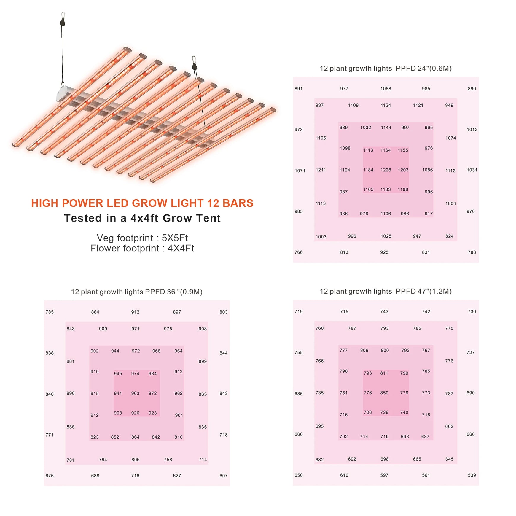 12 Bars Led Grow Light specification:
