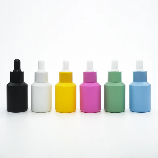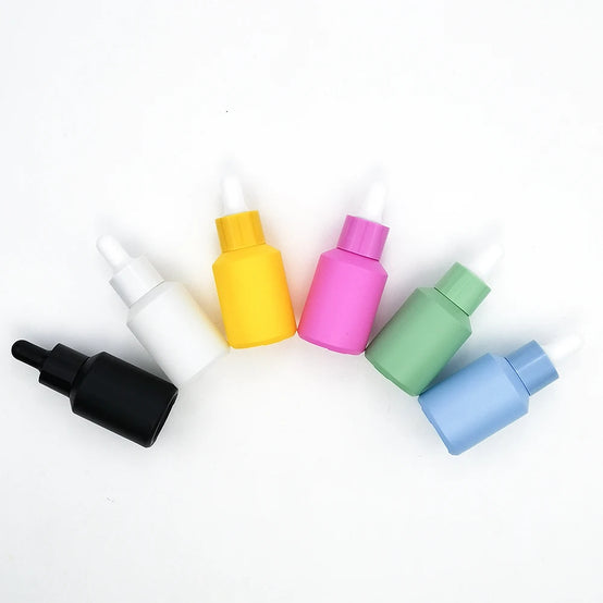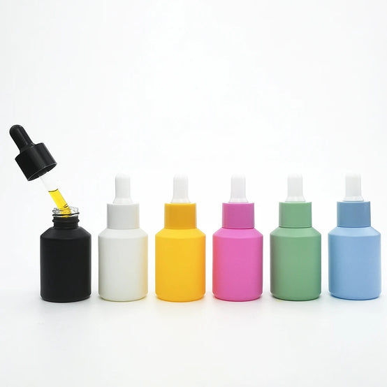Luxury custom 30ml matte black white pink green blue yellow glass dropper bottle 30ml with colorful dropper