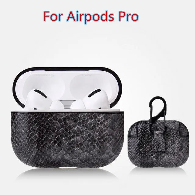 Luxury Generation Gen 3 Animal Style Portable Mini Wireless Earphone Snake Pattern Hard Leather Case Cover for airpods Pro 1 2 3