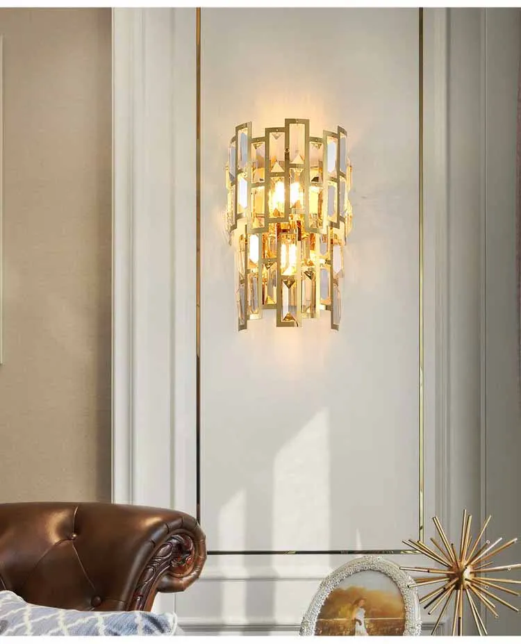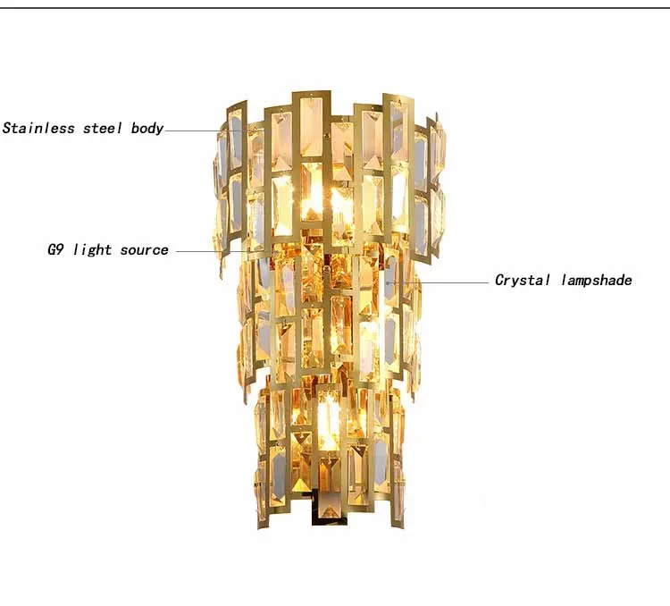 Luxury Gold Wall Lamp Modern Crystal Living Room Bedside Stainless Steel G9 Wall Lamp
