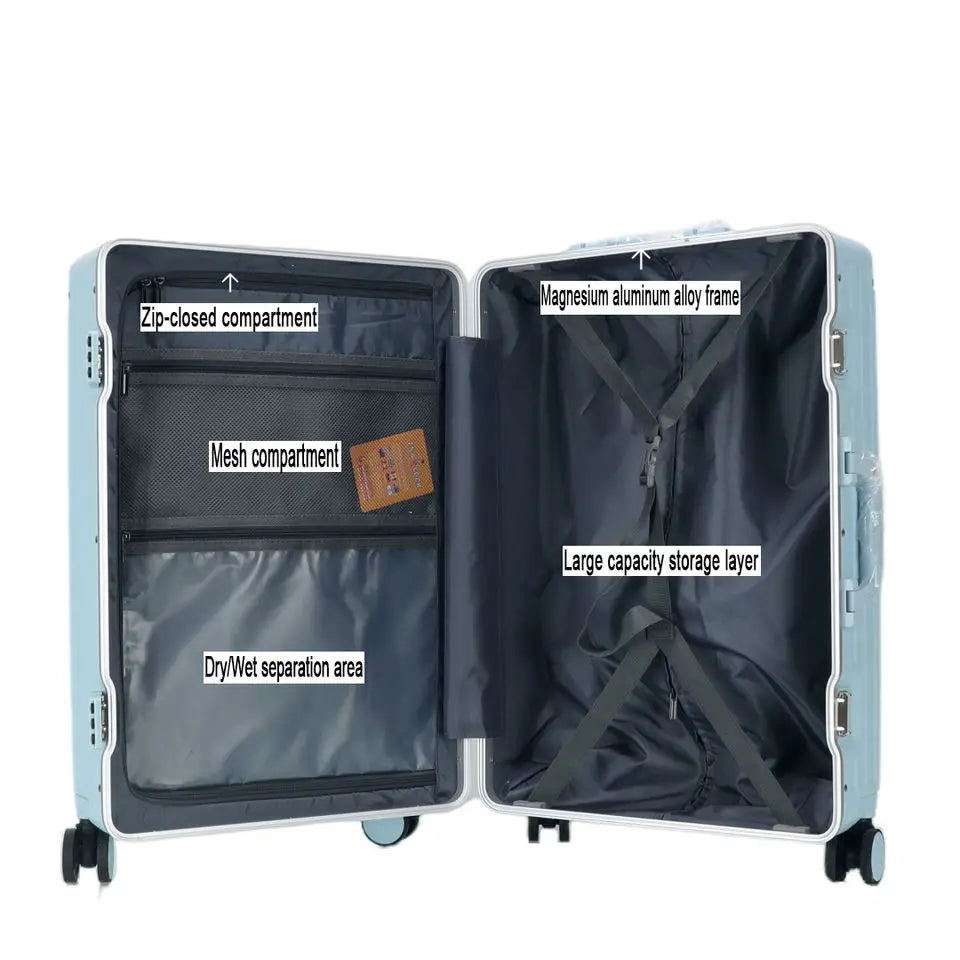 Luxury PC Trolley Luggage 20'' 22'' 24'' 26'' 28'' High Quality Aluminium Travel Luggage Suitcase Luggage Bag for Travel