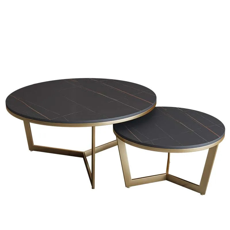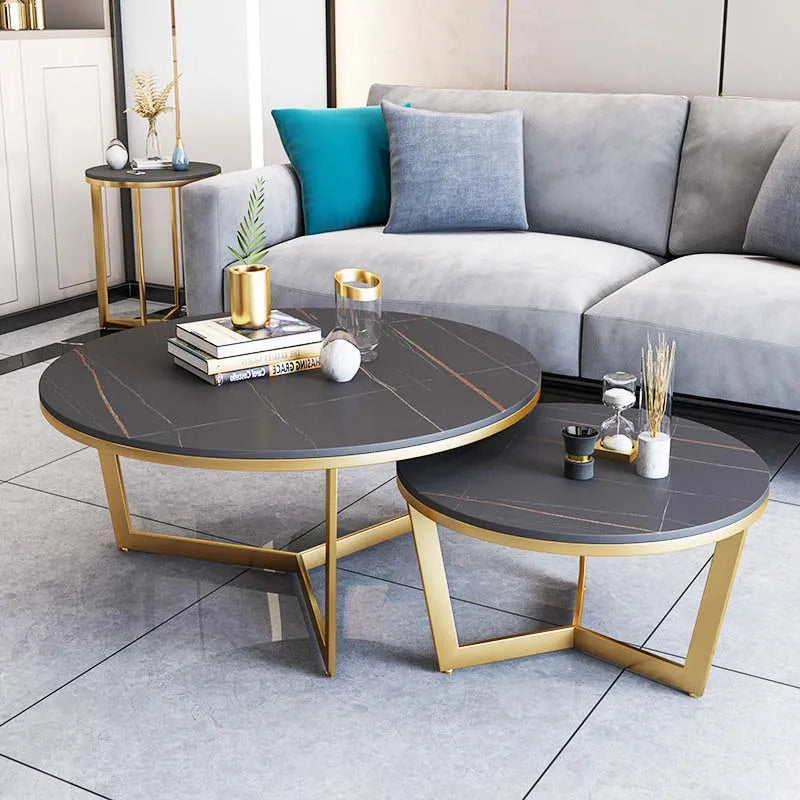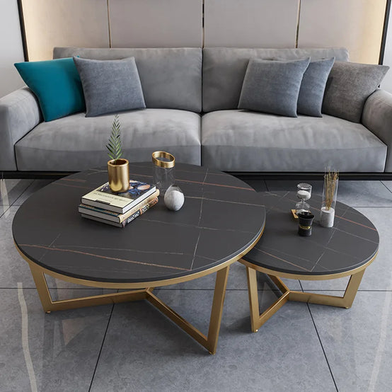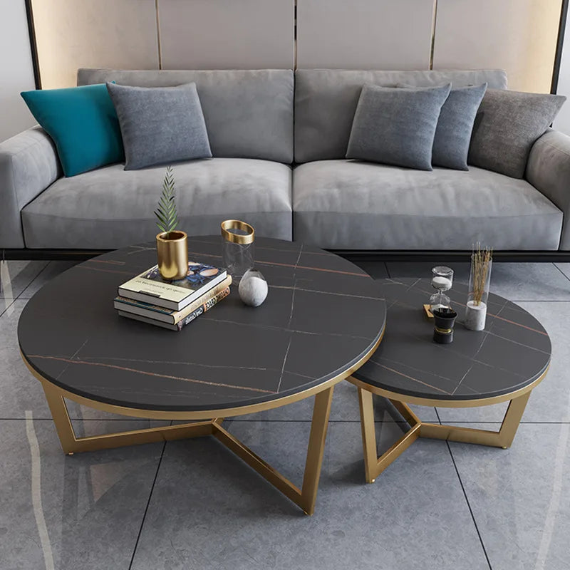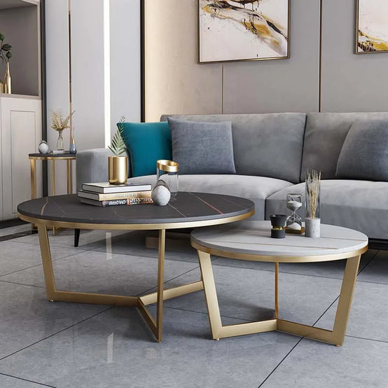 Luxury Round Nesting Marble Coffee Table Metal Leg Living Room Furniture