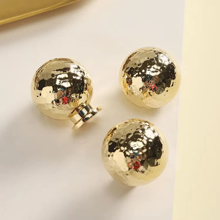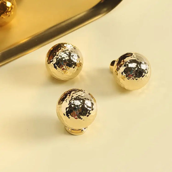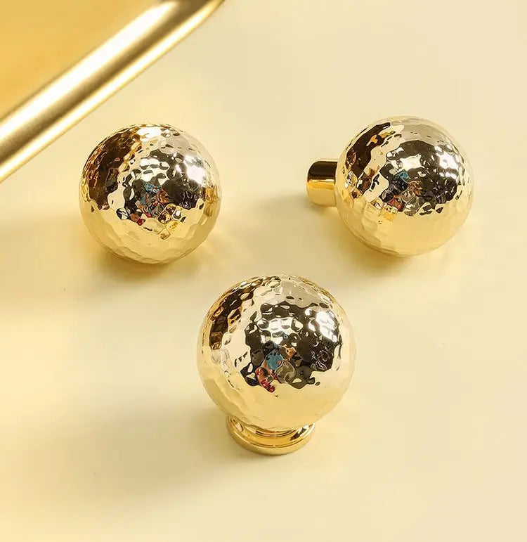 Luxury Solid Gold Hammer Pattern Brass Knob Pull Single Hole Drawer Wardrobe Cabinet Furniture Hammer Pattern Handle Knob