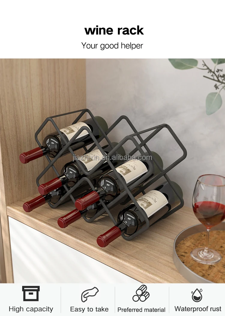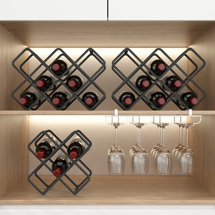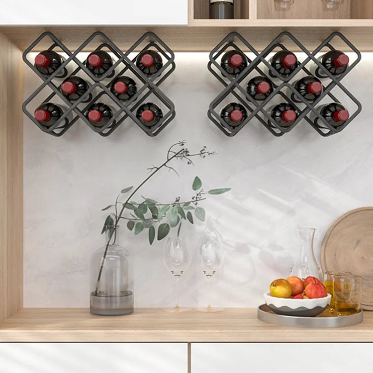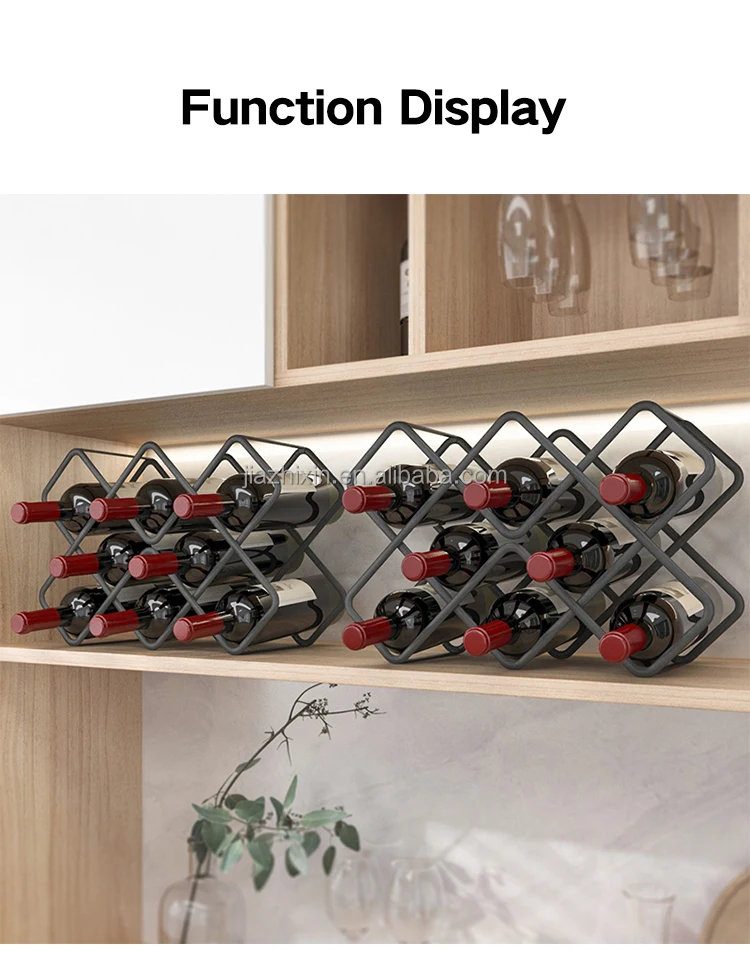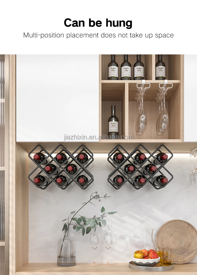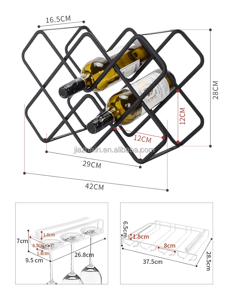 luxury wire single wrought iron metal countertop wall hanging stackable red wine bottle display racks mounted with glass holder