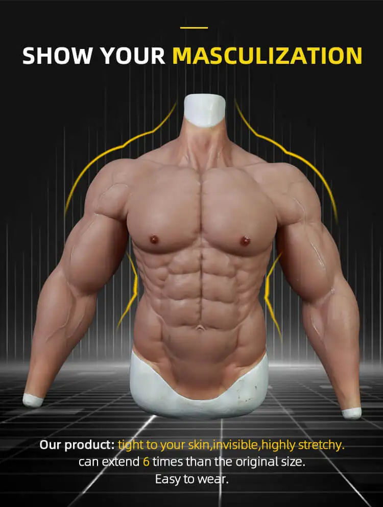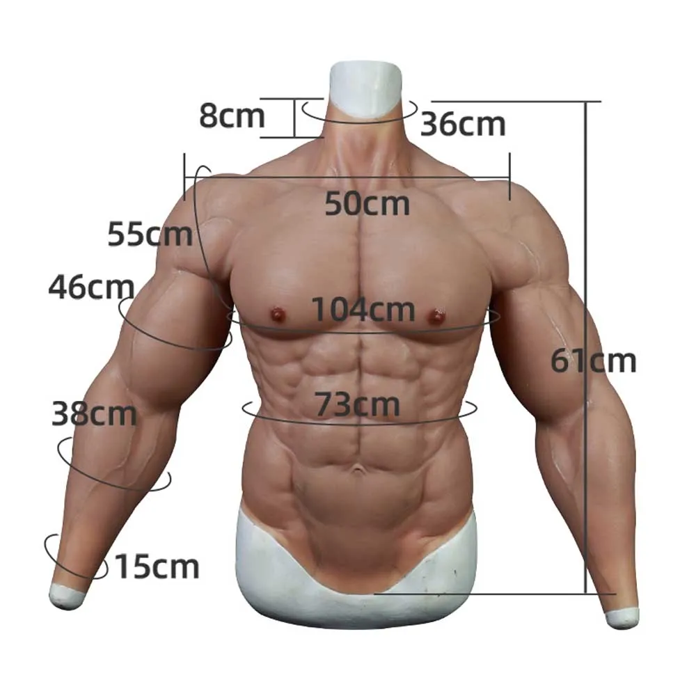 Macho Silicone Muscle Suit with arm Realistic Abdominal Muscle Fake Chest for Cosplay Costume Anime Masquerade
