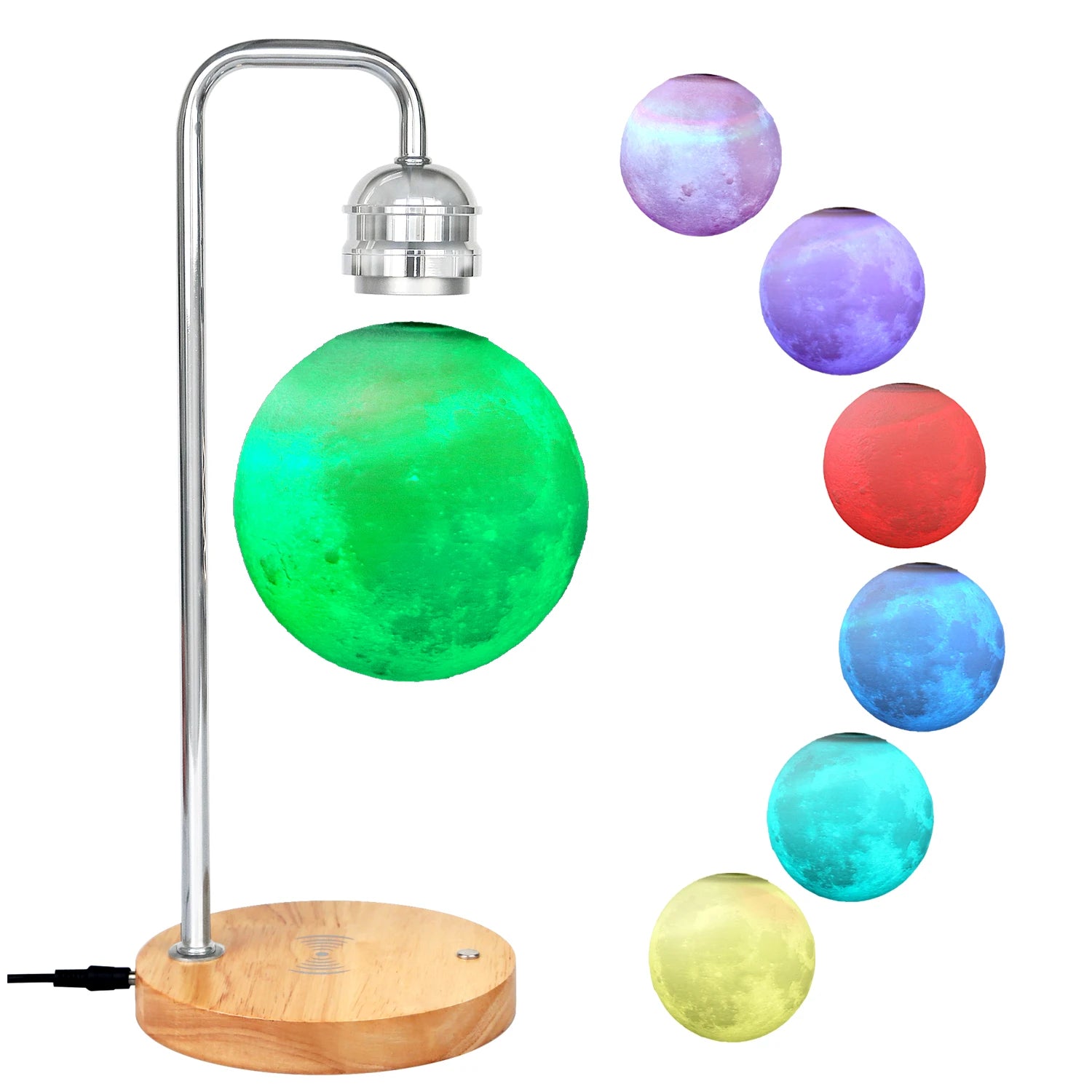 Magnetic Levitating Moon Lamp Table LED Night Light Zero-Gravity Floating Desk Toys for Gifts Present with Wireless Charger