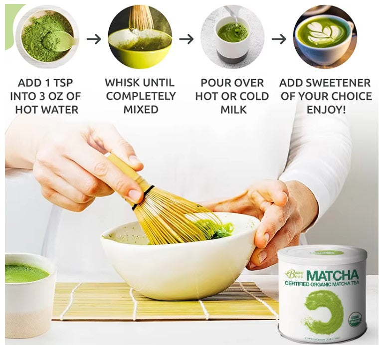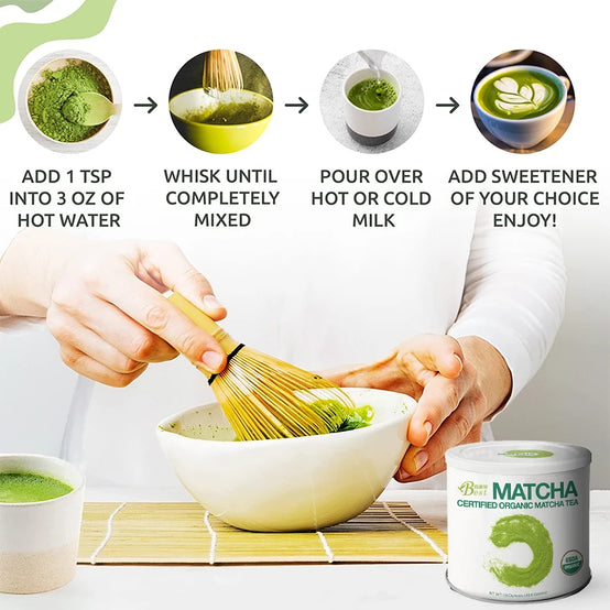 Choose our organic matcha and elevate your wellness journey with every sip. From matcha lattes to antioxidant-rich recipes, experience the unmatched benefits of ceremonial matcha crafted with care for a health-focused lifestyle in 2024 and beyond.
