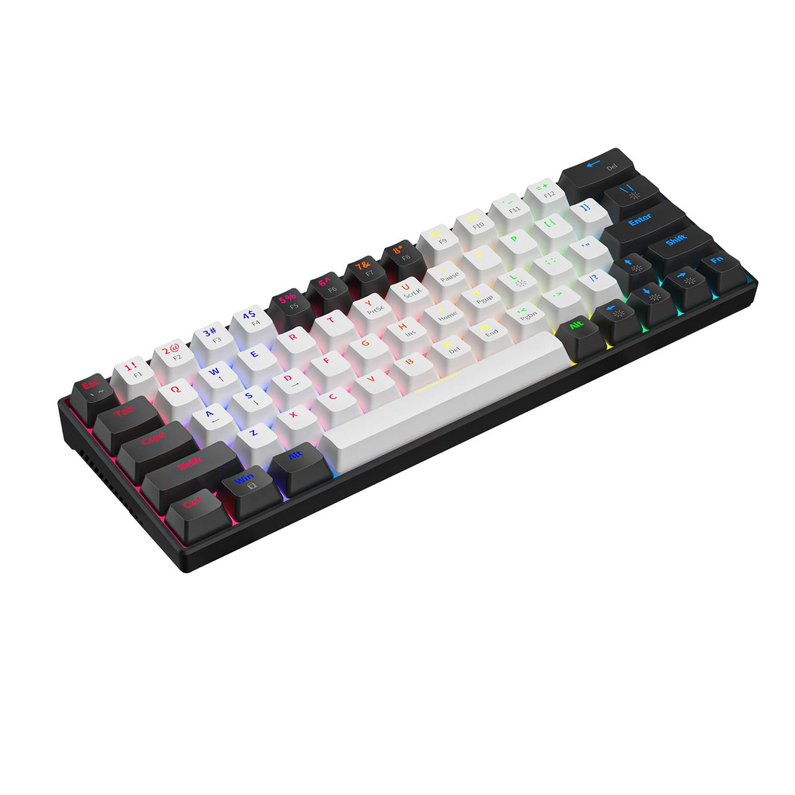 - Feature: Compact 63 keys with pudding keycaps, key layout design retains the common keyboard functions as much as possible while taking into account the appearance and practicality.