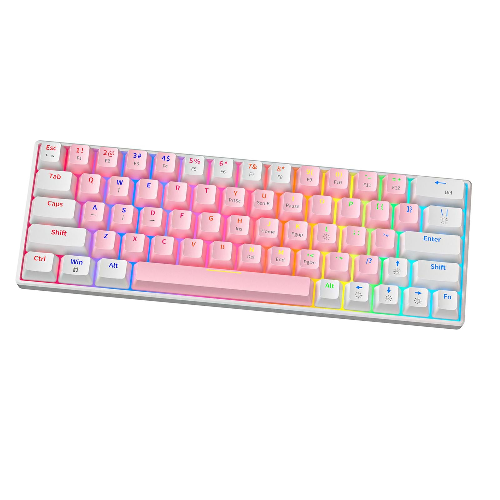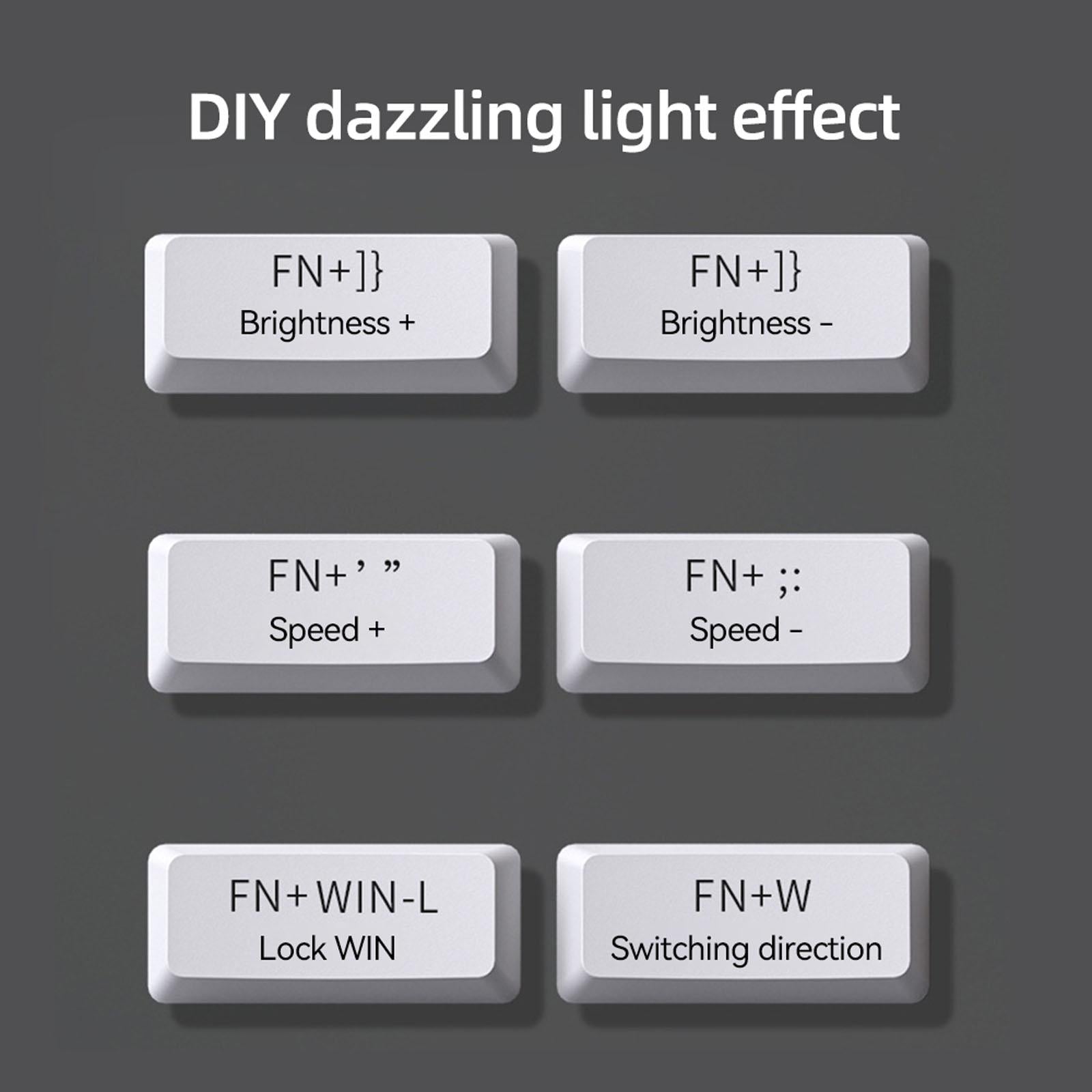 - Feature: Compact 63 keys with pudding keycaps, key layout design retains the common keyboard functions as much as possible while taking into account the appearance and practicality.