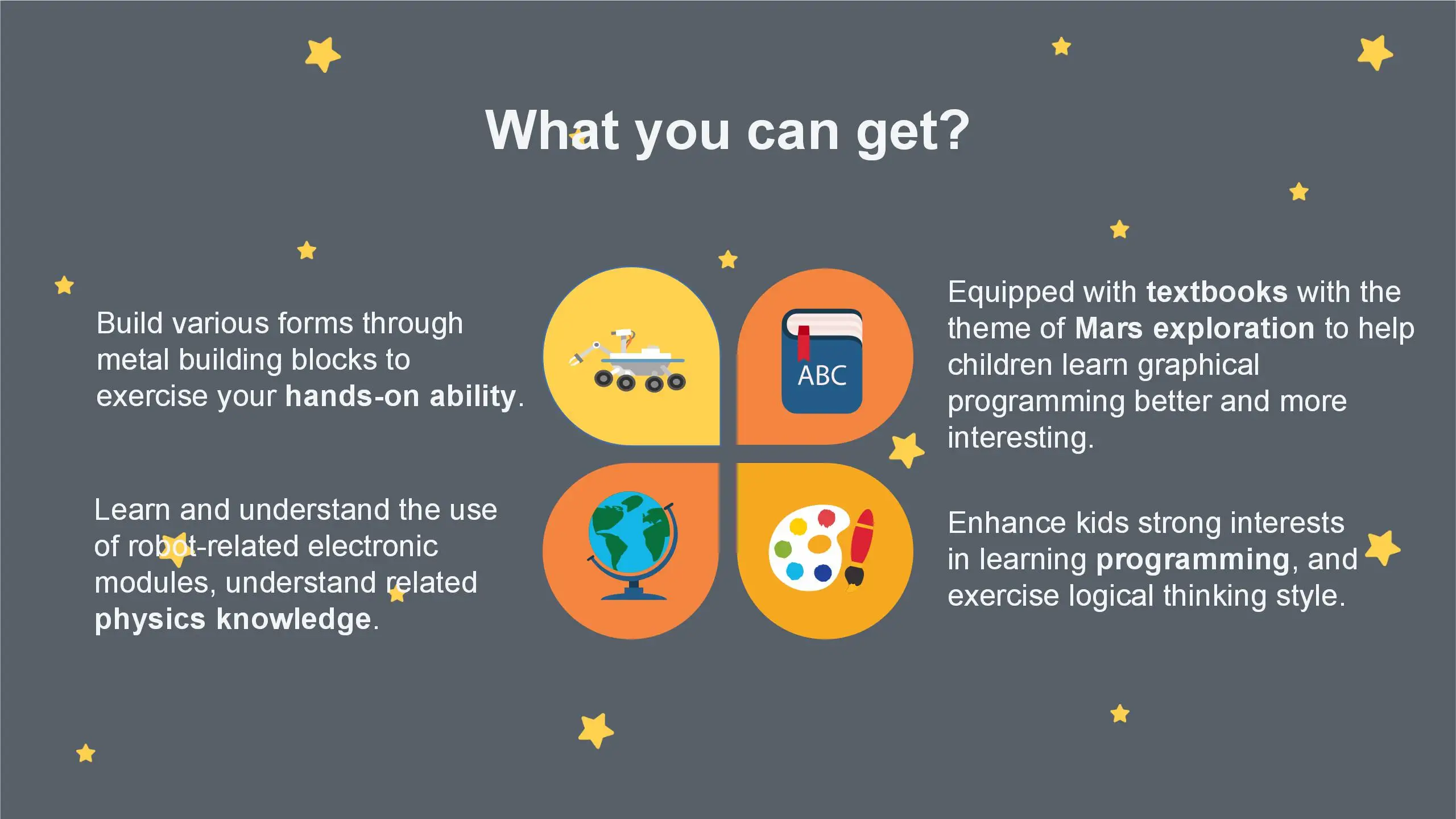 Based on the theme of Mars exploration, there is a step-by-step 24-chapter courses, which is suitable for after-school service teaching occasions. Help children learn programming better.