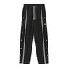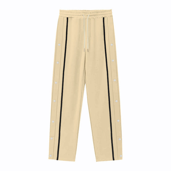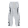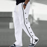 Men's White Contrast Piping and Popper Oversized Open Hem Cotton Trackpant