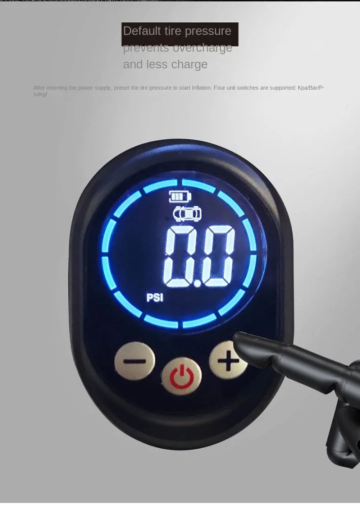 E68-1 Creative Portable Mobile Air Pump. Small size, light weight, novel appearance and other advantages. At the same time, it has a built-in high-precision air pressure sensor, and adopts 5 kinds of air pressure setting operation interfaces that are convenient for users to use safely. The interactive interface is: ball, bicycle, car gear, custom gear (0-150PSI).