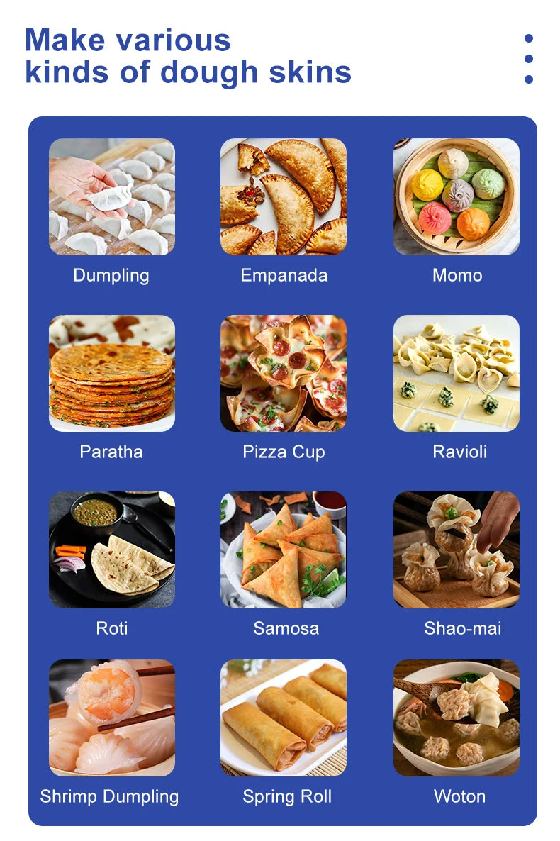 This is the Table Top dumpling skin making machine,which is the newest small dumpling wrapper maker can make round and square style dumpling wrapper just by changing the mould.This dumpling machine is the best choice for restaurants,hotels, dining hall,school canteen, factory canteen,quick-frozen dumplings manufacturers,and so on.