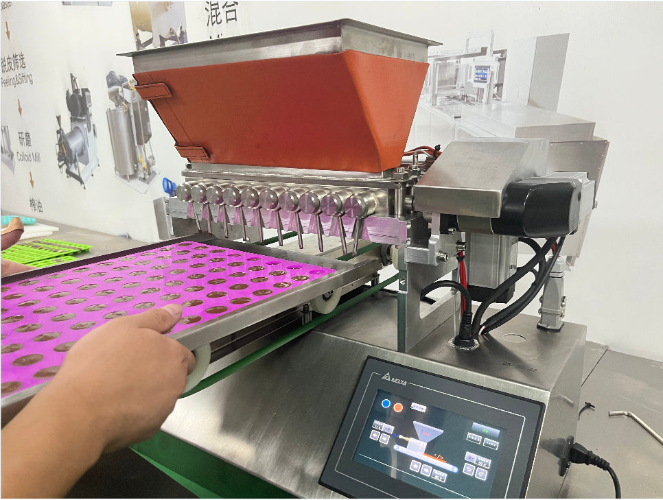 Good priced tabletop confectionery depositor is suitable for chocolate, caramel, jelly, hard candy soft candy, and much more similar syrup depositing. The adjustable nozzles make it ideal for molds with different layouts.