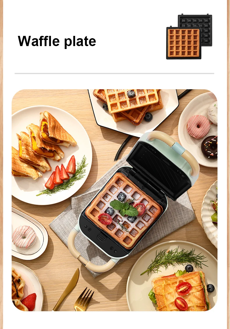 Mini Waffle Maker 3-in-1 Waffle Maker with Removable Non-Stick Plates Compact Sandwich Maker Breakfast Machine Toaster Machine
