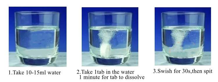 Chewable Mouthwash Tablets>: Take 1tablet in your mouth and bite down. take a sip of water, swish for 30 seconds then spit.