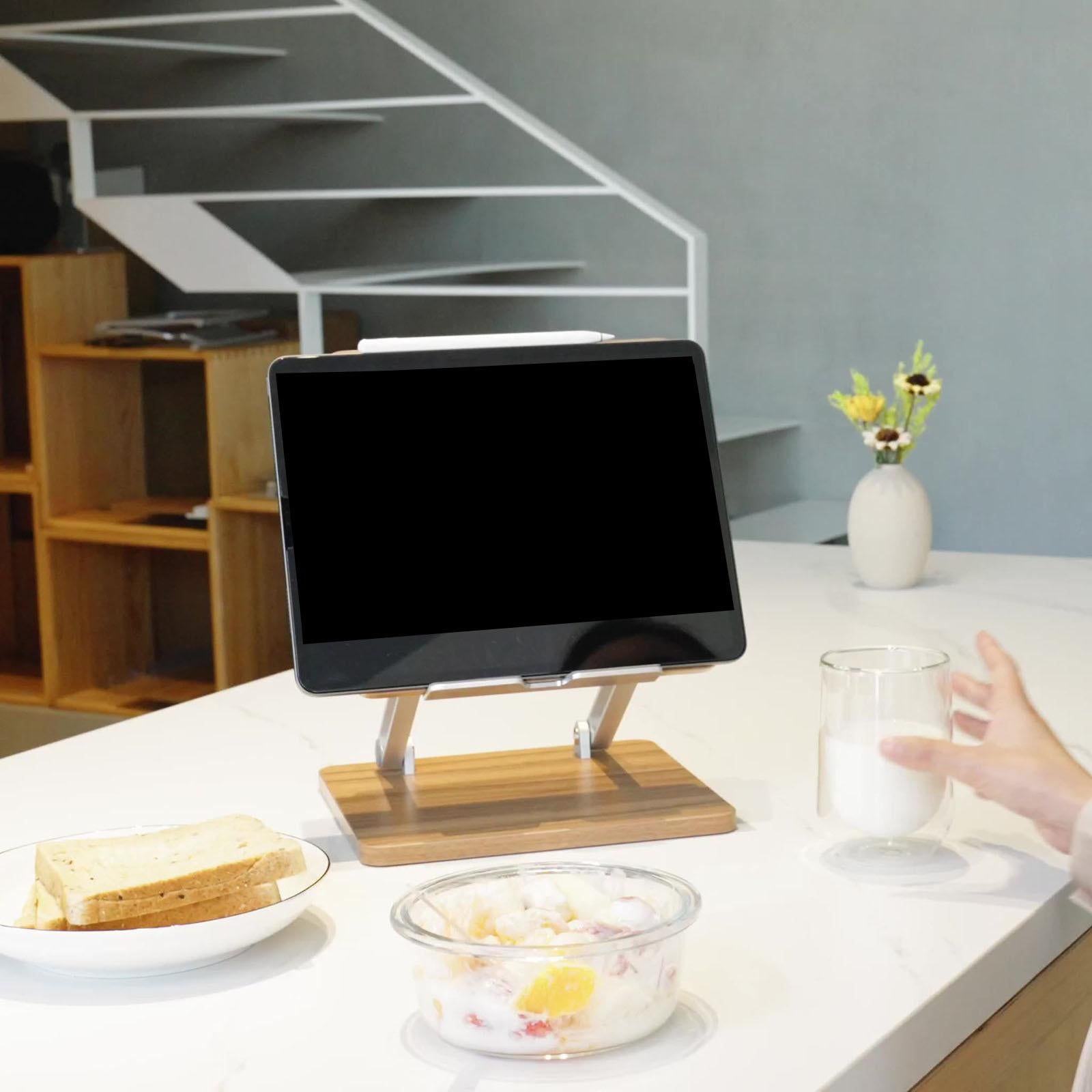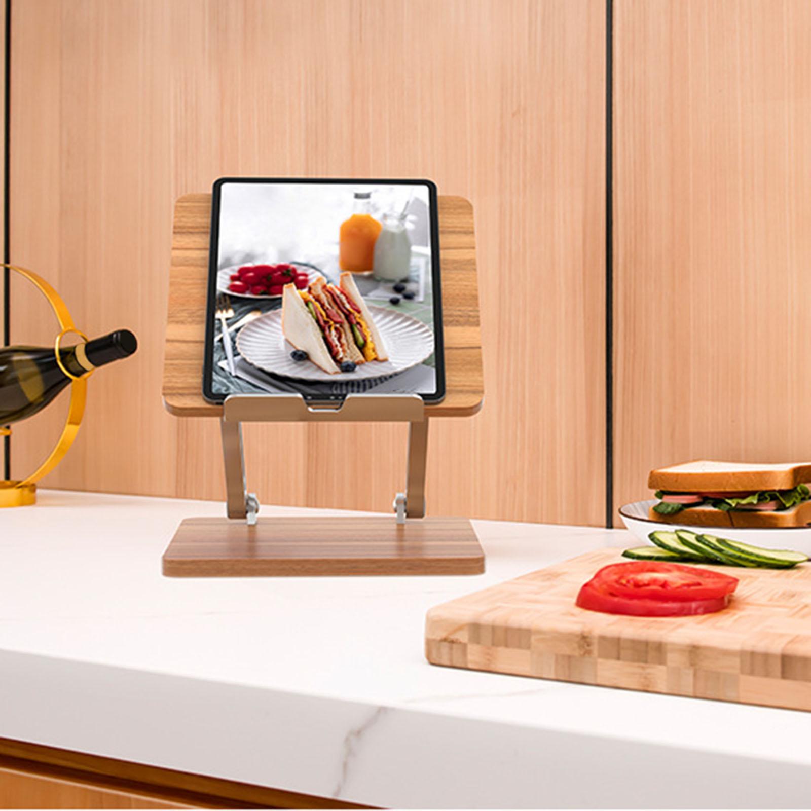 - HIGH QUALITY: The tablet holder made of wood and metal material, strong, durable and sturdy for our use.