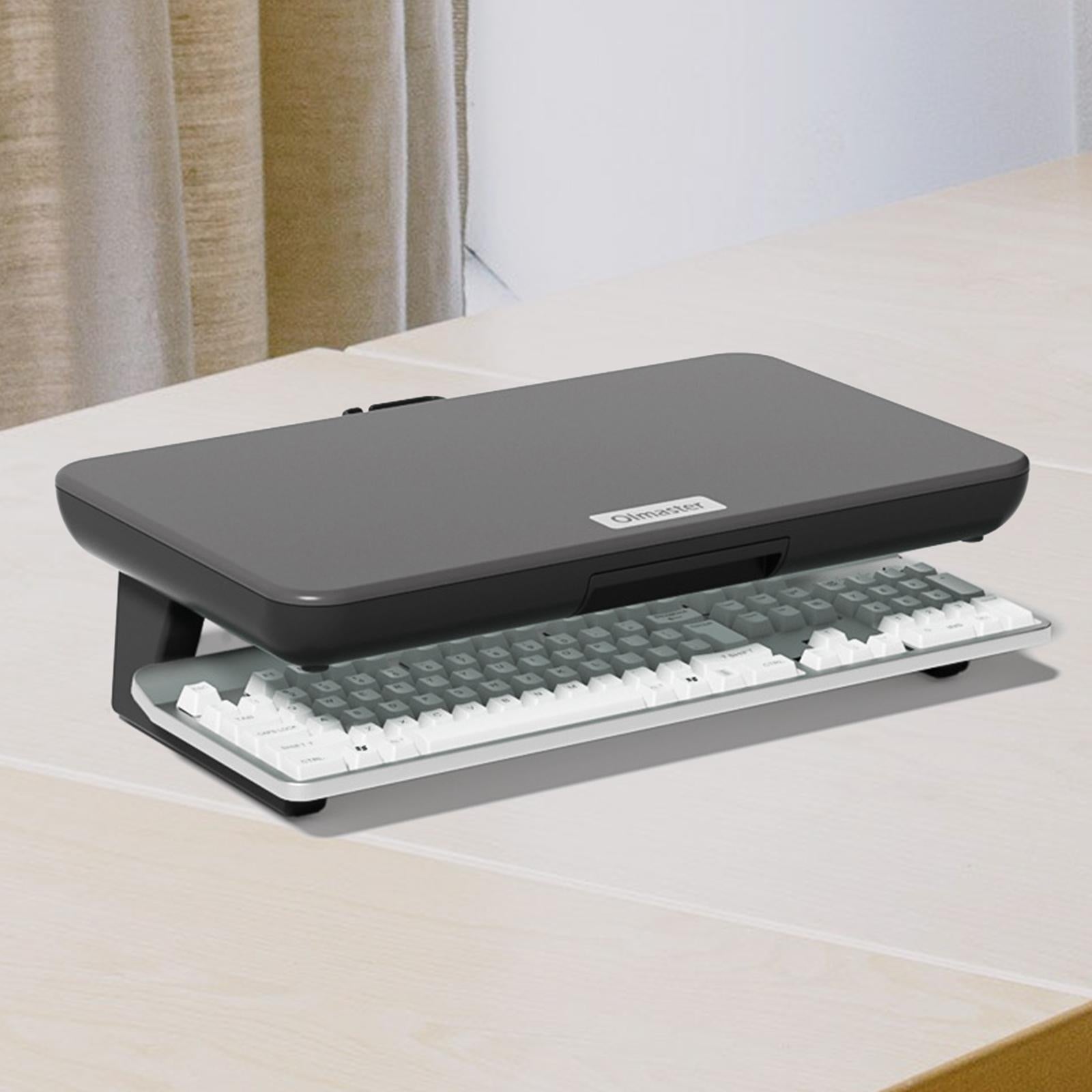- Feature: This monitor riser is equipped with a storage drawer in the middle that helps organize your small items. When pulling out the drawer, you can stand your phone in the slot for video call. There are plenty of space underneath for storing your keyboard when not in use.