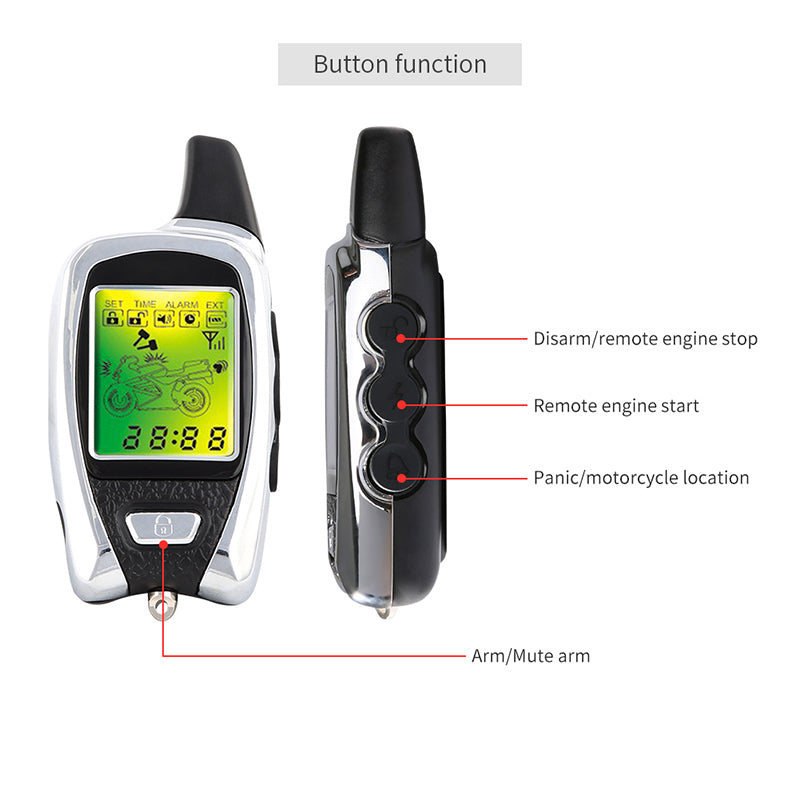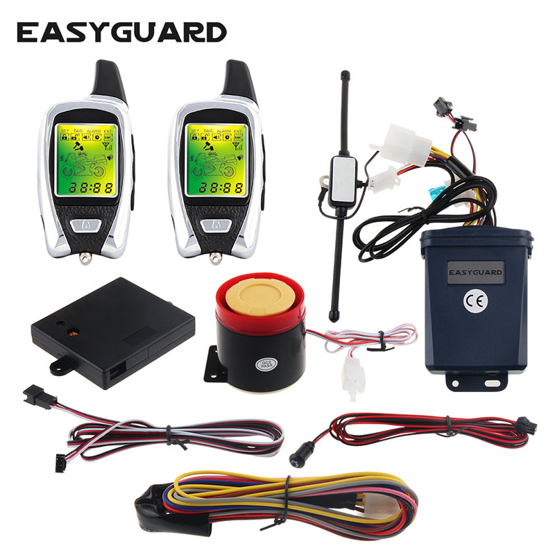 This is a two-way Motorcycle alarm System with remote engine start from EASYGUARD. It is built with shock sensor & proximity sensor. The alarm fits for most DC12V motorcycle bikes on the market.