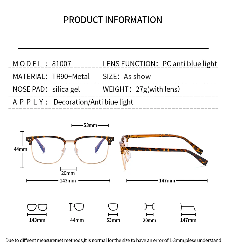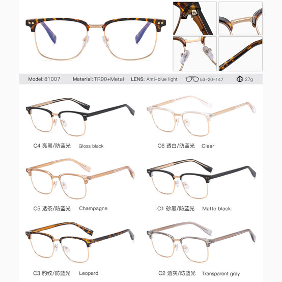 MS 81007 Eyeglasses 2023 New Fashion Best Selling Ladies Classic Metal Tr Frameless Frame Anti Blue Light Glasses