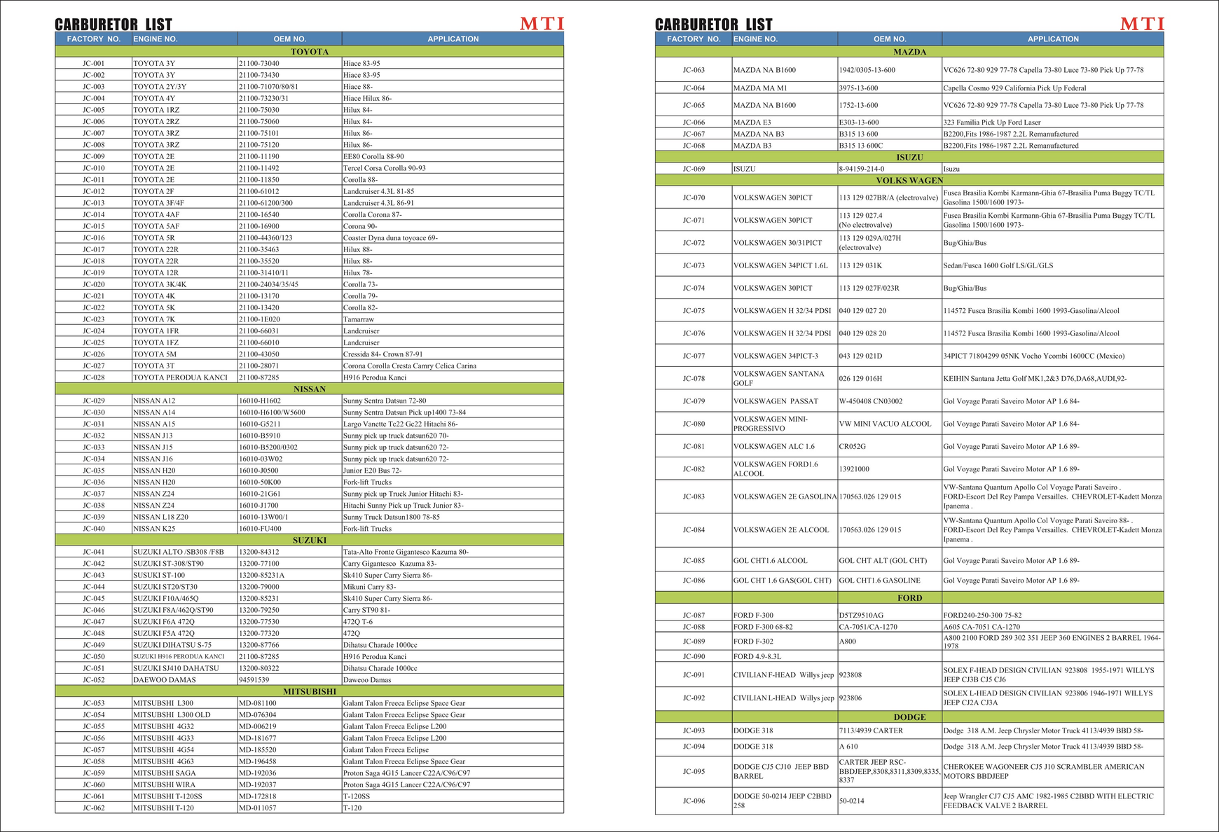 MTI FULL NEW COMPLETE ENGINE 4Y CARBURETOR OEM 21100-73230 21100-73231 for TOYOTA