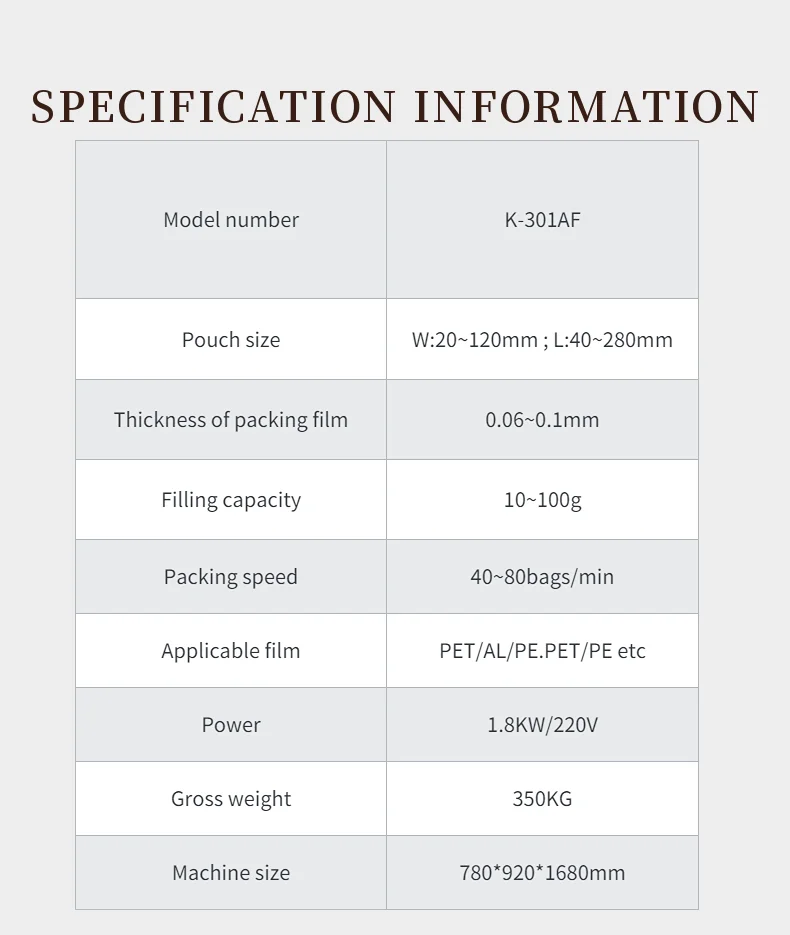 Applicable to packing puffing snacks, granules, tea, toys, powder, liquid, sauce, paste, cream and so on.