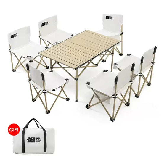 Outdoor foldable portable table and chair set