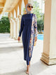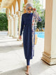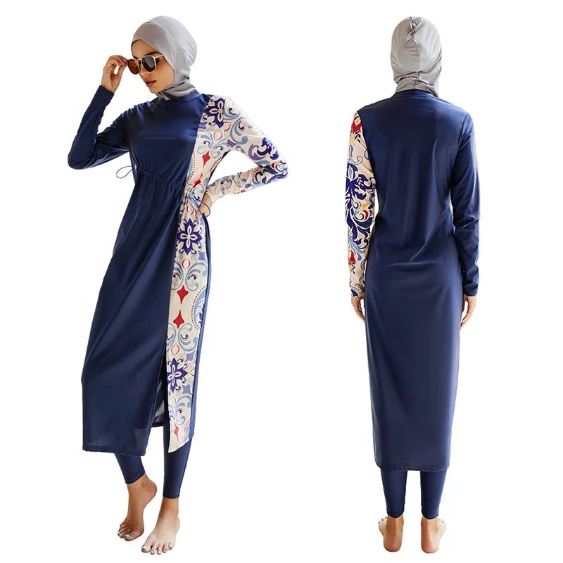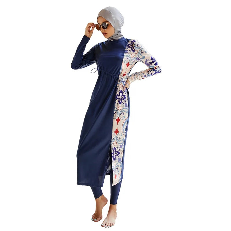 Muslim Modest Split-Block Color-Block Print Swimwear Suits Ladies Three-Piece Surfing Diving Sunscreen Swimsuit Borkini
