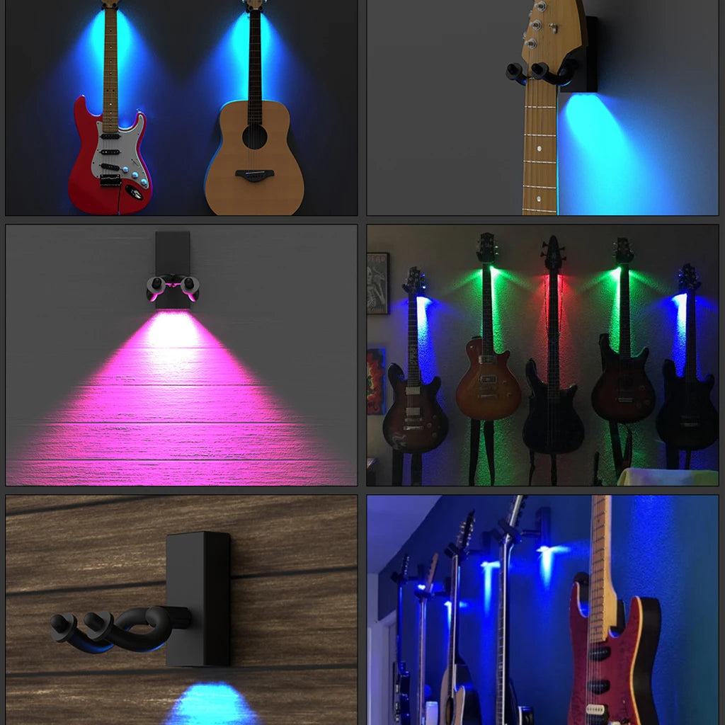This guitar wall hanger is a guitar wall hanger bracket that lights up with LEDs.