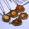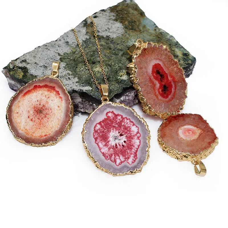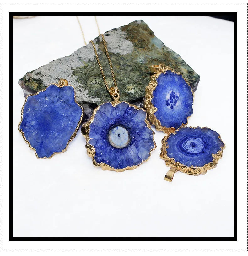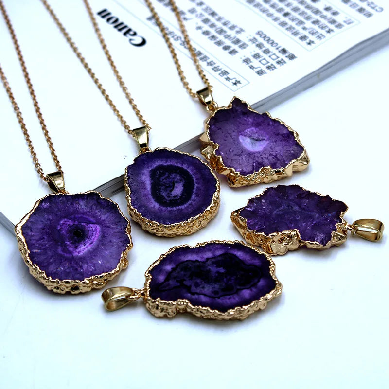 Natural Crystal Stone Color Raw Stone Sliced Agate Necklace Natural Irregular Crystal Slice Pendant Necklace With Golden Chain