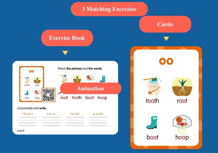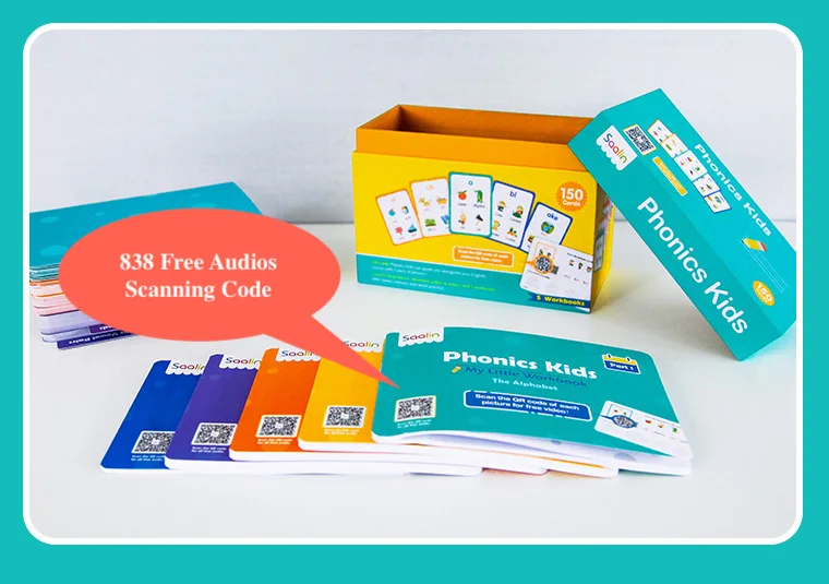 2. 5 Workbooks with 150 Cards(Pictures&Sentences) , 150 Animation Videos, 838 Audios