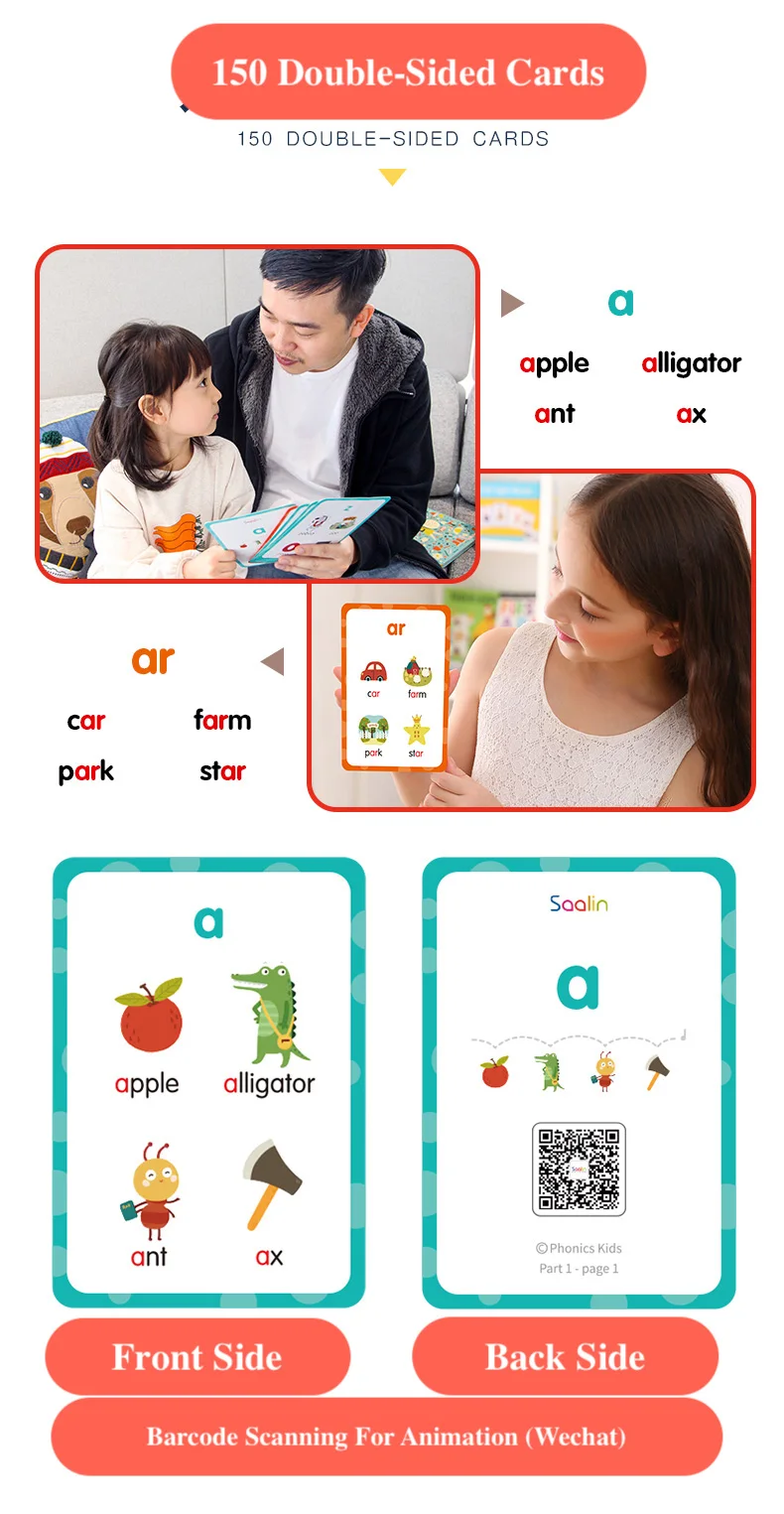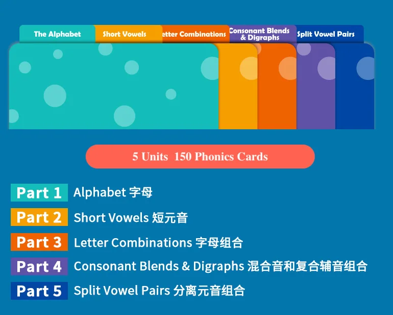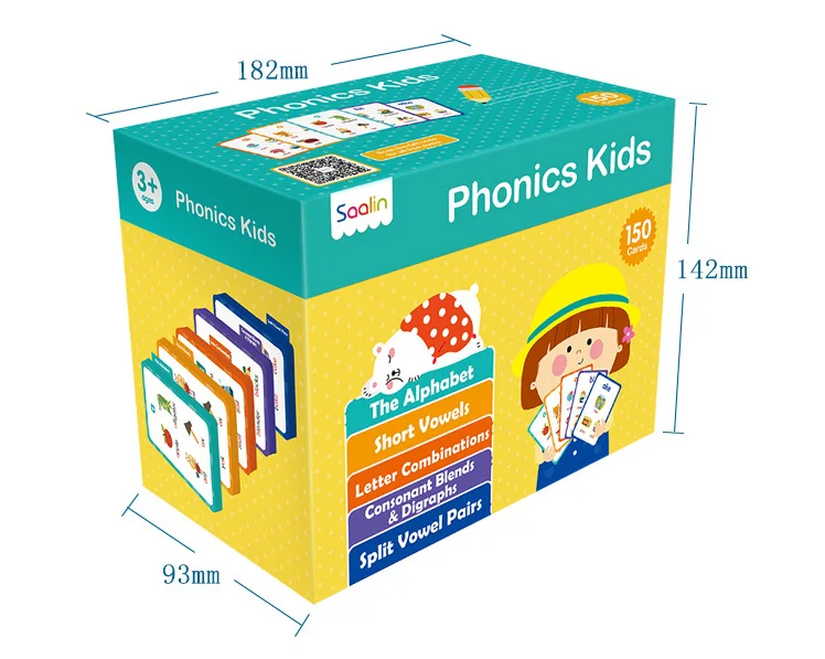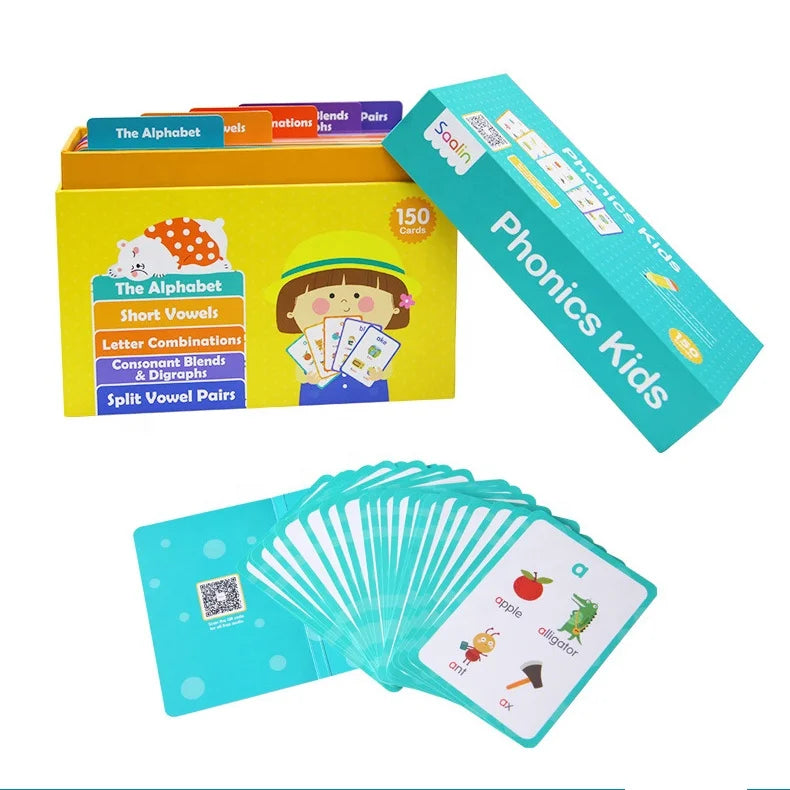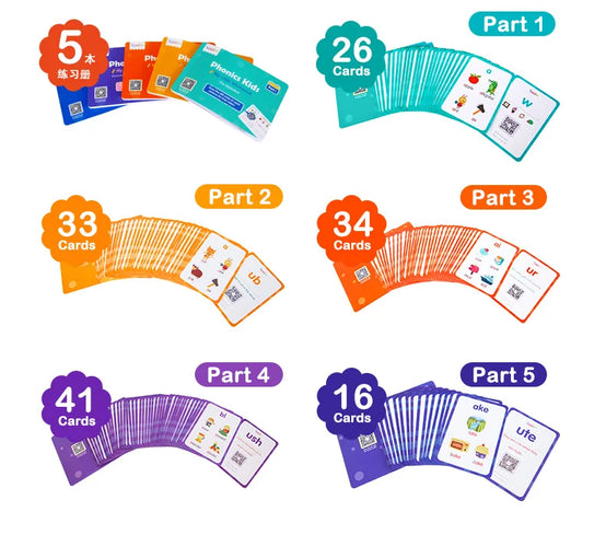 3. 5 levels 150 Phonics Cards With different color.