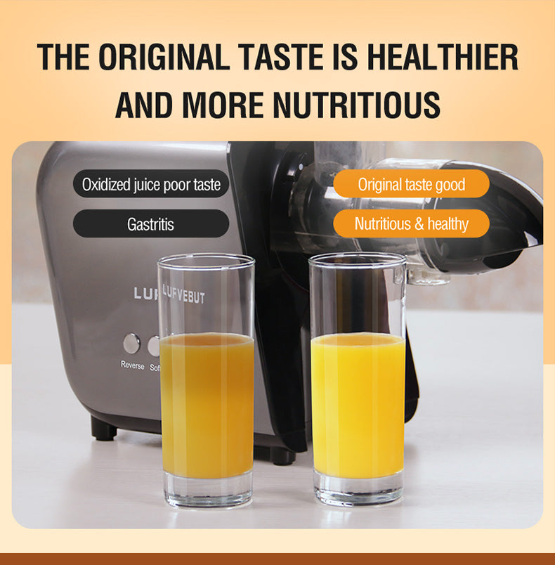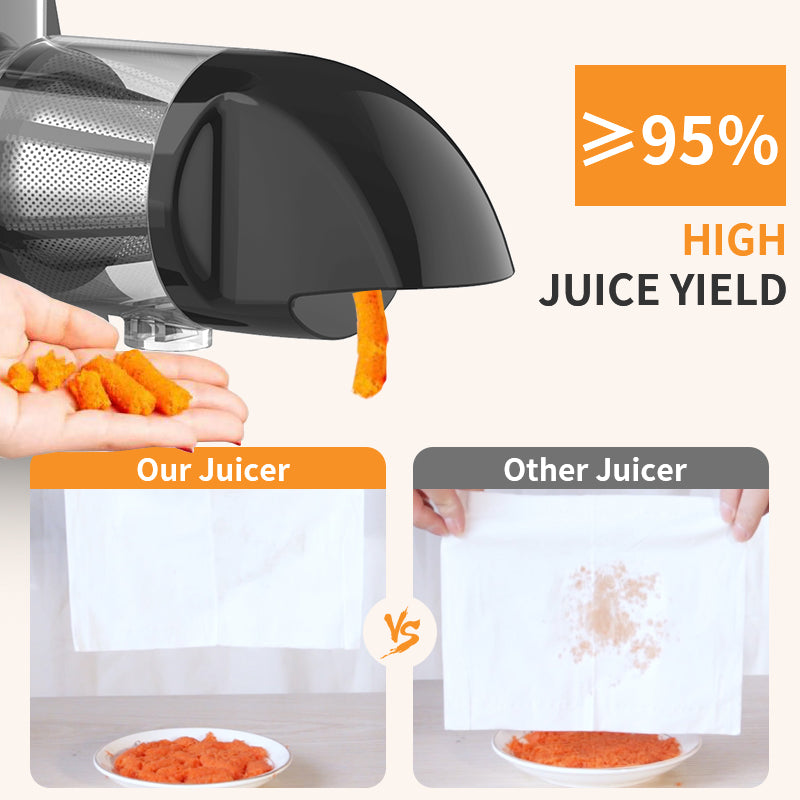 - Fresher, Better Flavor & More Nutritious: Cold Press Auger Juicer with upgraded spiral system, this can fully squeeze the fruits and vegetables with maximum juice yield, and minimal oxidation, retain high nutrition without creating too much heat and friction, reserving the vitamins, enzymes, minerals and nutrients that boost immunity and enhance health. Can be stored for days. Enjoy a good day started with a glass of nutrient-rich and delicious fruit&vegetable juice.
