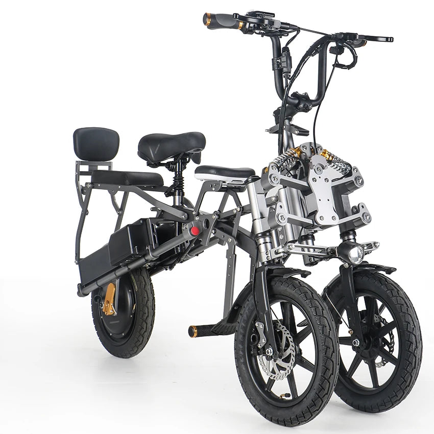 Foldable 3-wheels electric bike S6 is powerful, portable, conspicuous, and stable to ride. Notably, it can be folded up and unfolded in 1 step for just 1 second! It has 2 riding modes which is perfect for any riders (Even kids and elderly can ride it safely) in any given situation (commute, family outings, and off-road).