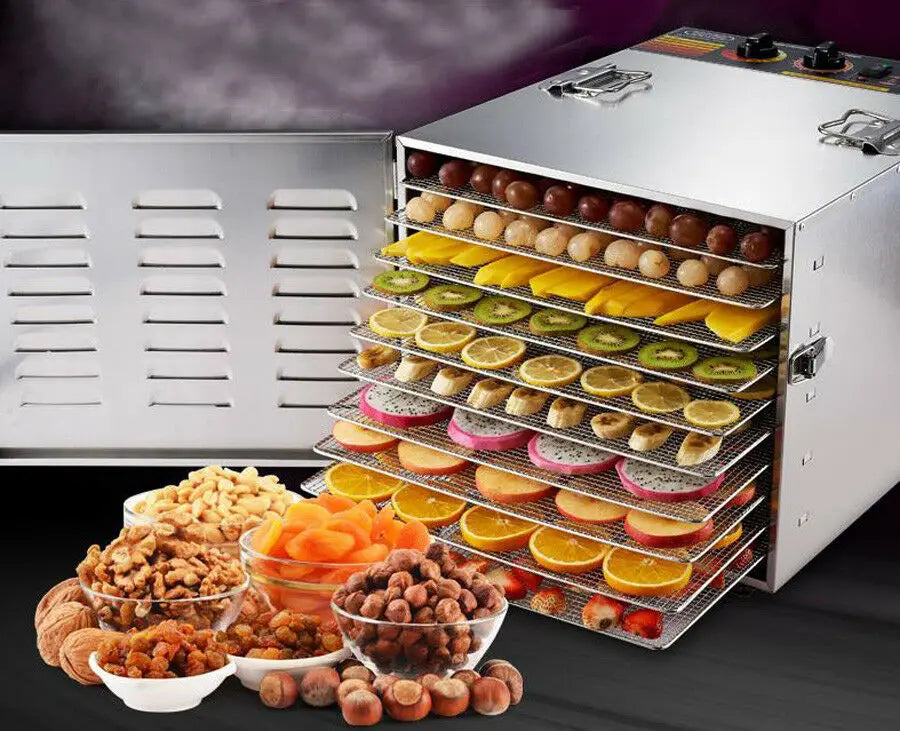 (1) Hot air circulation system, low energy, high efficiency, can dehydrate food rapidly. (2) Apply to dry fruits, vegetables, meat, herbs, grains and other kinds of food, health and safety. (3) Temperature control and timer function, set up temperature and timer in accordance with different kinds of food.