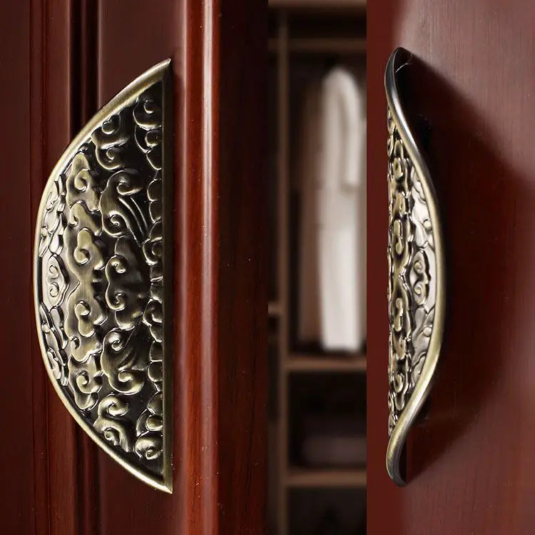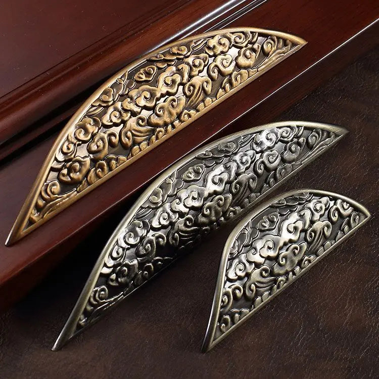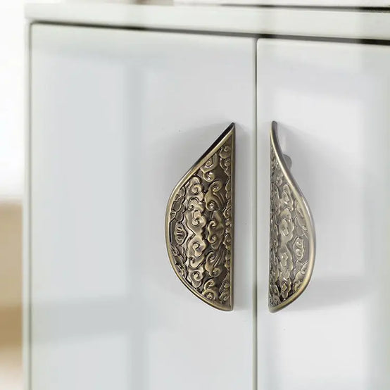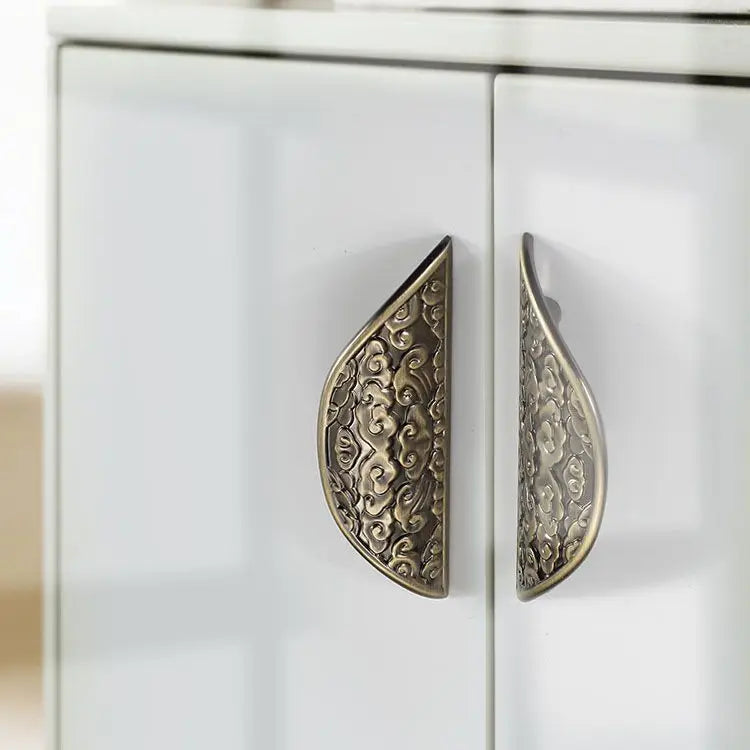New Bronze Pattern Pair Antique Brass Cabinet Door Pulls Handle Leaf Shell Invisible Furniture Drawer Handle Knob