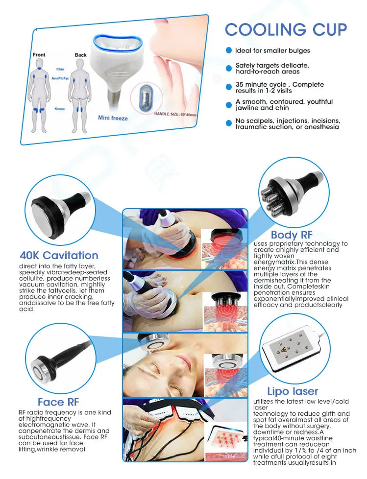 2).Cavitation: direct into the fatty layer, speedily vibrate deep-seated cellulite, produce numberless vacuum cavitation, mightily